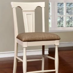 Add some Mission-style appeal to your new dining room decor with the Benzara Sabrina Counter Height Dining Side Chair – Set of 2. Two matching counter-height side chairs are included in this set. Each chair is built with wood solids with an arched splat-back. Select veneers top the wood, finished in your choice of available color. The seats come padded with thick foam and are upholstered in a light beige fabric.