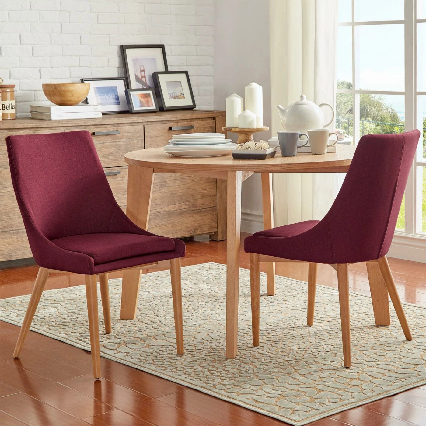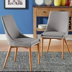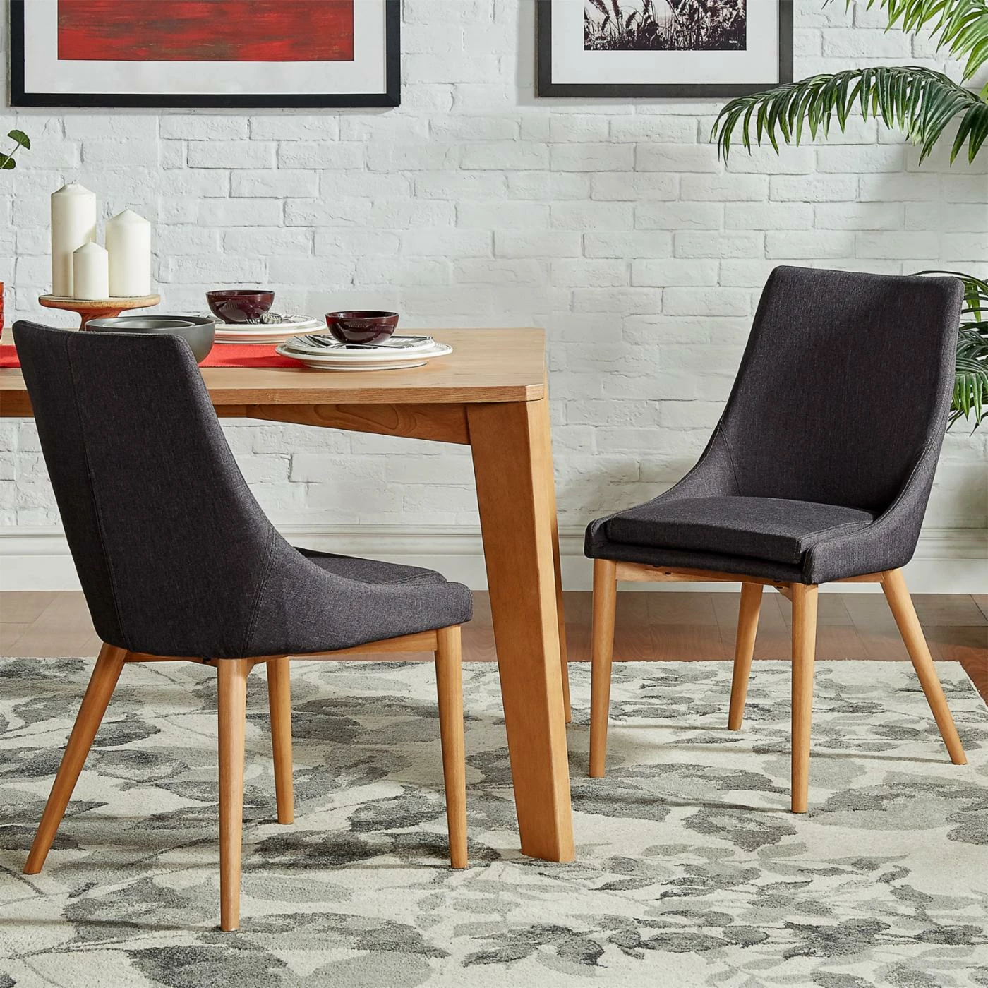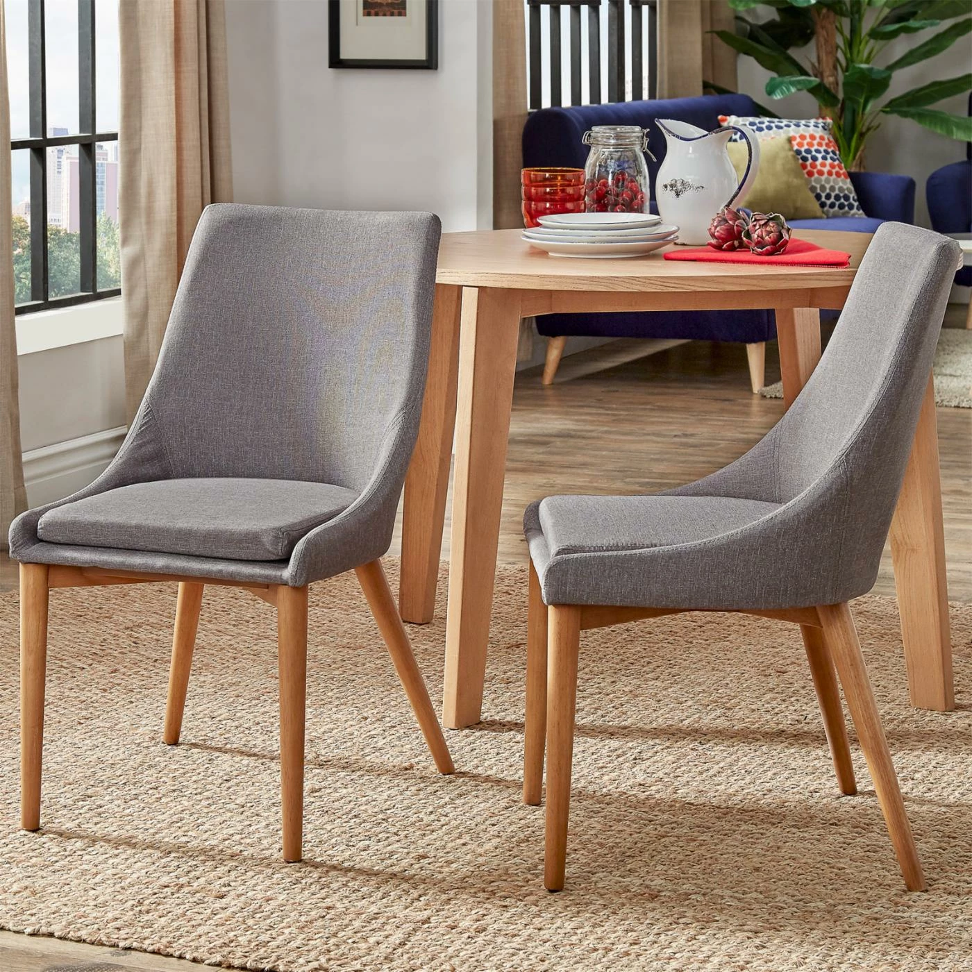 Angled legs and a light-finished wood make the Chelsea Lane Baxter Counter Height Dining Chair – Set of 2 the perfect partner for mid-century modern breakfast bars and counter-height tables. Both chairs are comfortably padded with foam, so you can relax while you enjoy your meals. Microfiber upholstery provides the elegant textural appeal of linen while ensuring effortless care. Some assembly required.