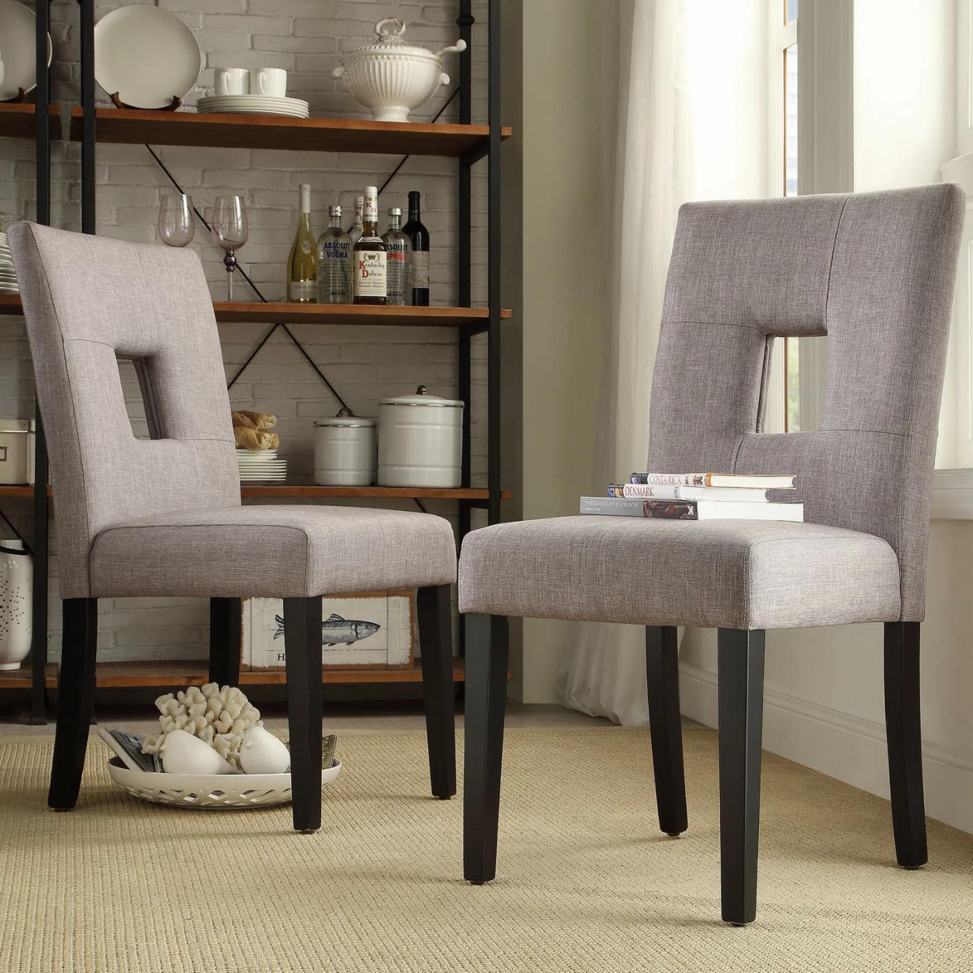 The open keyhole back on the Chelsea Lane Upholstered Keyhole Dining Side Chair – Set of 2 creates a clean, modern appeal that’s sure to spruce up your dining room. Packaged as a set of two, these dining side chairs feature Asian rubberwood frames in a rich ebony finish, not to mention cozy linen upholstery in a full range of color options. Dinner never looked better.