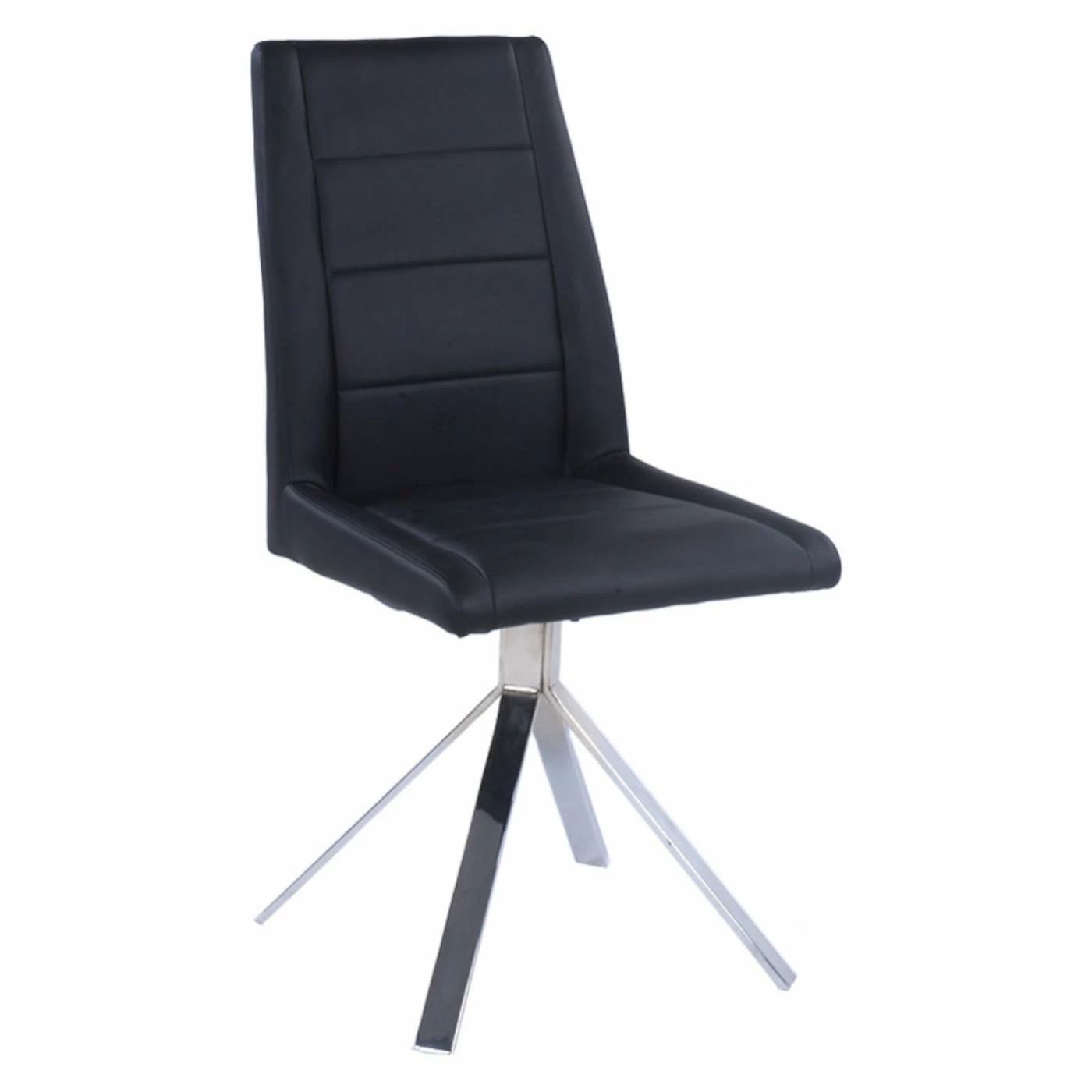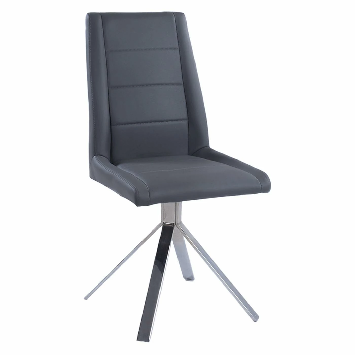 Comfortable seating with modern flair comes home in the Chintaly Dana Channel Back Pyramid Base Side Chair – Set of 2. Faux leather upholstery boasts channel back detailing and horizontal front tufting. Open pyramid bases in polished chrome lend stylish stability to these modern side chairs. The set includes two chairs in your choice of available upholstery color.