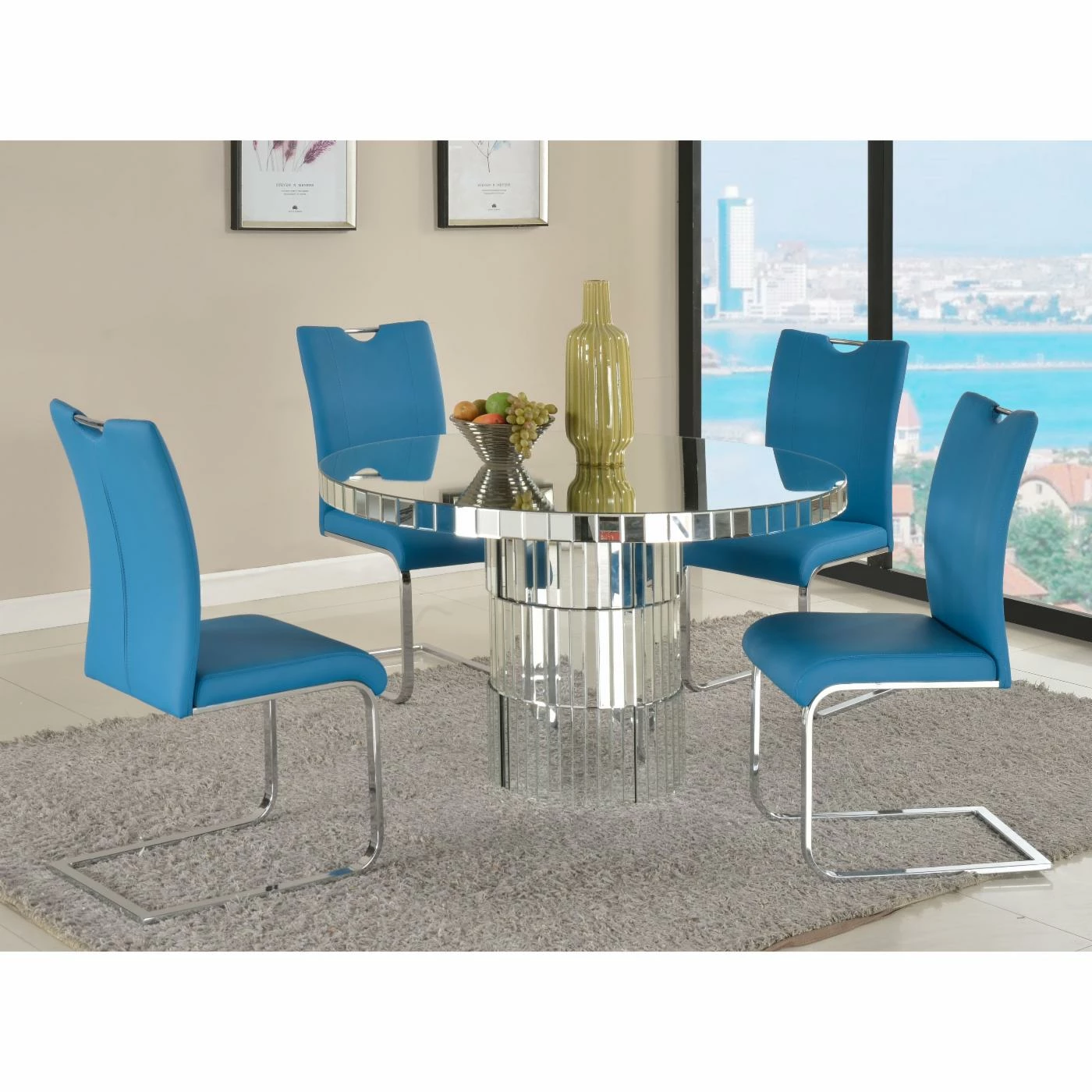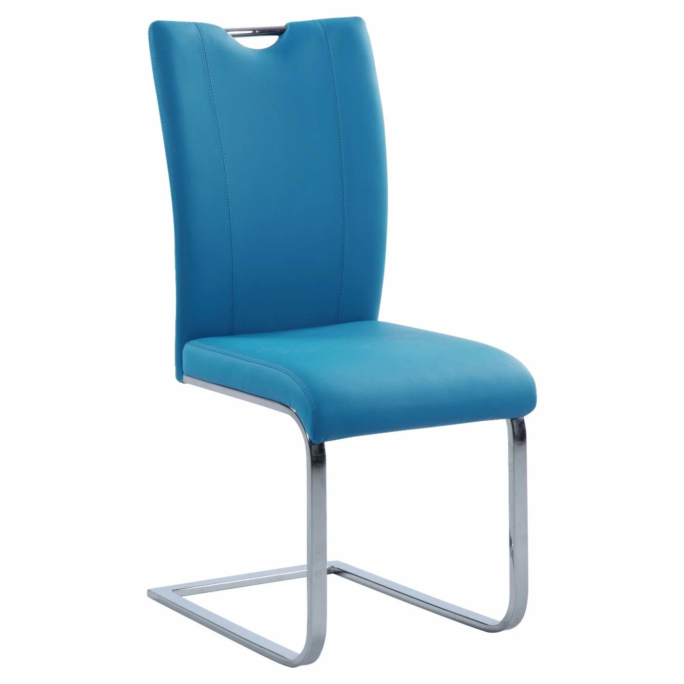 Faux leather upholstery in select color options makes the Chintaly Melissa Upholstered Dining Side Chair – Set of 2 a chic choice for your dining room. Polished chrome lends a modern edge to the cut-out detailing and frame of this side chair. The set includes two chairs.