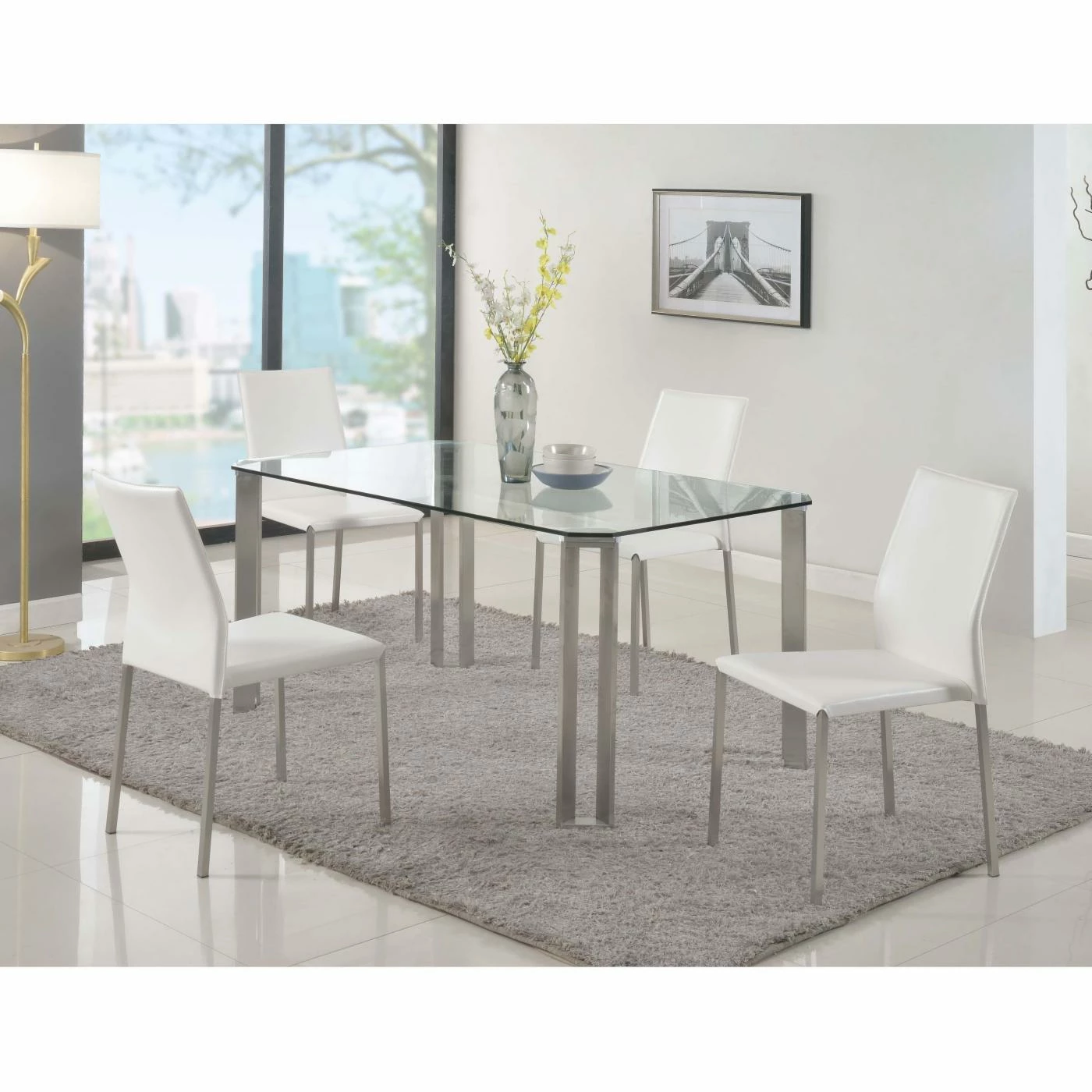 The Chintaly Rhonda Upholstered Stackable Dining Side Chair – Set of 4 is a striking addition to your dining or kitchen setup. Each dining side chair is supported by a metal frame. The smooth acrylic and plastic seat is cozy to sit on. The bright white finish on each of these chairs gives them a bright look. They are stackable for convenient storage when not in use.