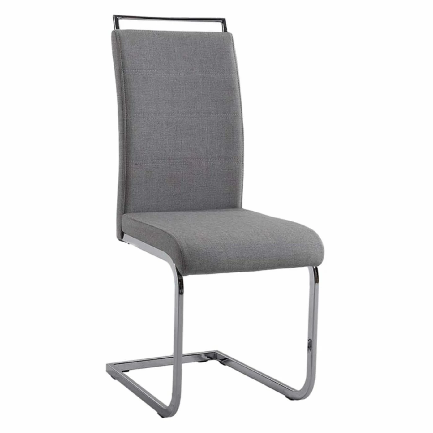 Bring modern style and comfortable seating to the table with the Chintaly Sunny Handle Back Side Chair – Set of 4. Chromed metal cantilever bases are upholstered in light gray faux leather, making this chair as comfortable as it is striking. Handle backs offer added practicality and updated flair. This set includes four side chairs.