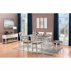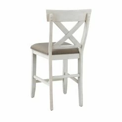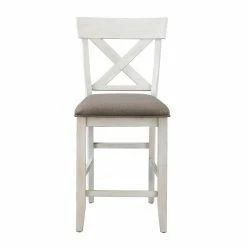 Finished in our Bar Harbor Cream, the Coast to Coast Bar Harbor II Cross Back Counter Height Dining Side Chair – Set of 2 is the ideal companion piece to the matching dining table. Cross bars connect the slightly tapered legs, and an X cross design on the tall back matches the trestle style of the dining table. Complete with a plush padded seat to ensure hours of comfort as you and your friends linger over dinner or games, this tall dining chair is a definite winner!