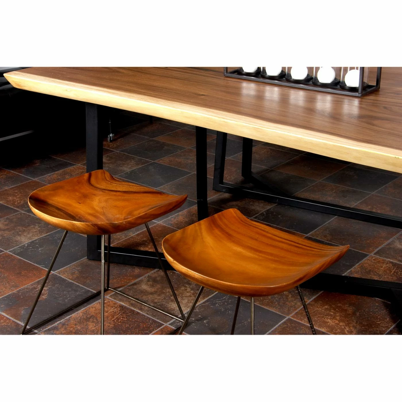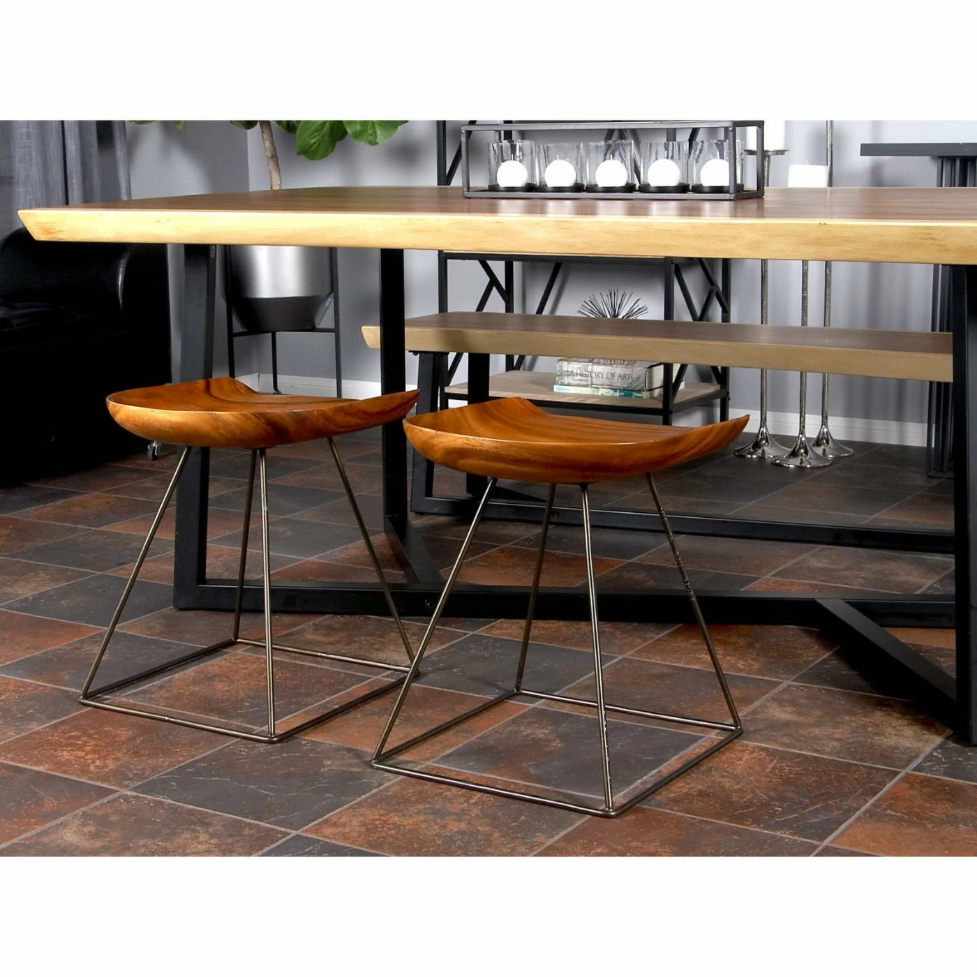Deliver a note of rustic charm to your dΓ©cor with the DecMode Suar Wood and Iron Square-Seat Stool. Constructed from iron, this stoolβs frame boasts a versatile gray finish. Featuring a backless and armless design, this stool boasts a square wood seat in a brown finish. Sturdy and attractive, this stool brims with rustic style.