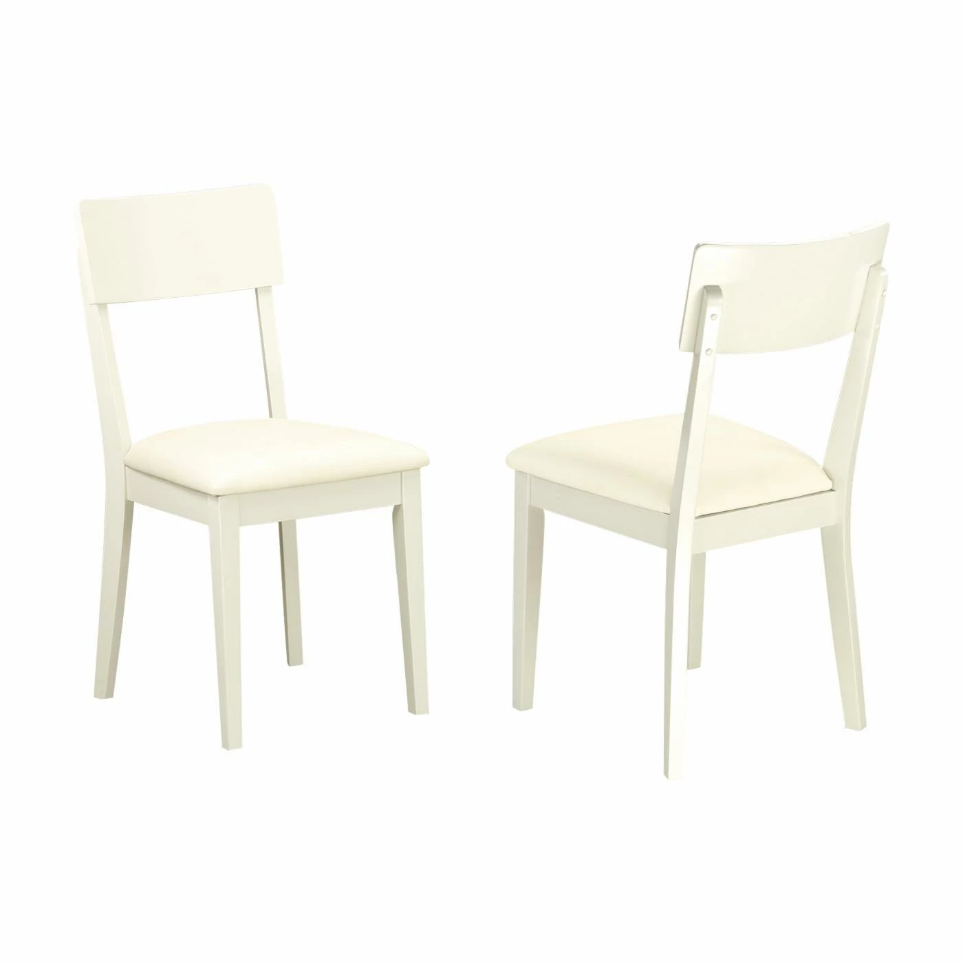 The East West Furniture Andy Slat Back Dining Chairs with Faux Leather Seat – Linen White offer the perfect blend of elegant simplicity and support. These two panel-back dining chairs feature sturdy solid wood frames in a gleaming white linen finish that is versatile enough for any dΓ©cor. The upholstered seats offer additional comfort, and the slight curve of the backs encourages proper posture while relaxing and dining.