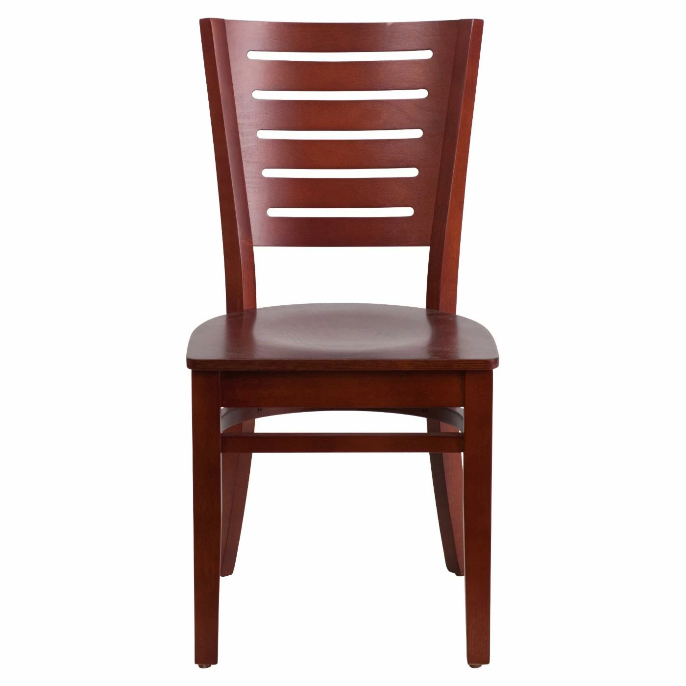 Horizontal slats make the Flash Furniture Darby 18.25 in. Slat Back Restaurant Chair modern enough to suit contemporary interiors but still classic enough to suit traditional décor. The versatile dining chair comes in our choice of available finishes and provides reliable durability due to the strength of its mortise-and-tenon solid European beech hardwood frame. Metal wood screws reinforce the frame, and a curved support bar makes it capable of holding plenty of weight. Plastic glides are positioned on each foot to prevent damage on hard flooring.