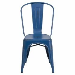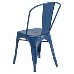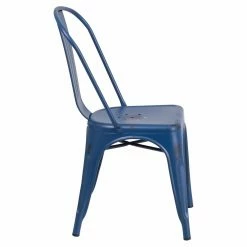 Show off your love for vintage decor by arranging the Flash Furniture Distressed Antique Blue Metal Indoor-Outdoor Stackable Chair around your dining table. This chair features a back with a gentle contour that hugs the body. The rich blue finish is applied over the durable metal frame. These chairs are stackable for easy storage.