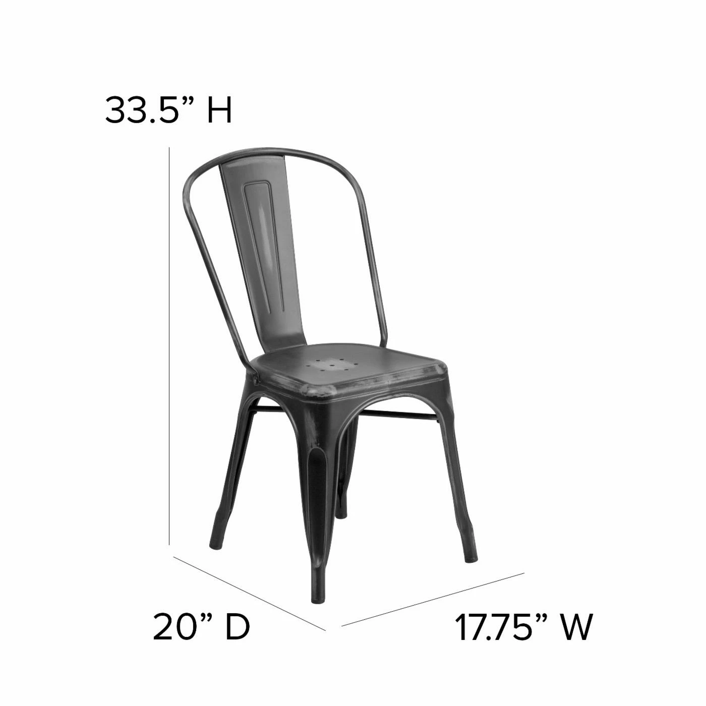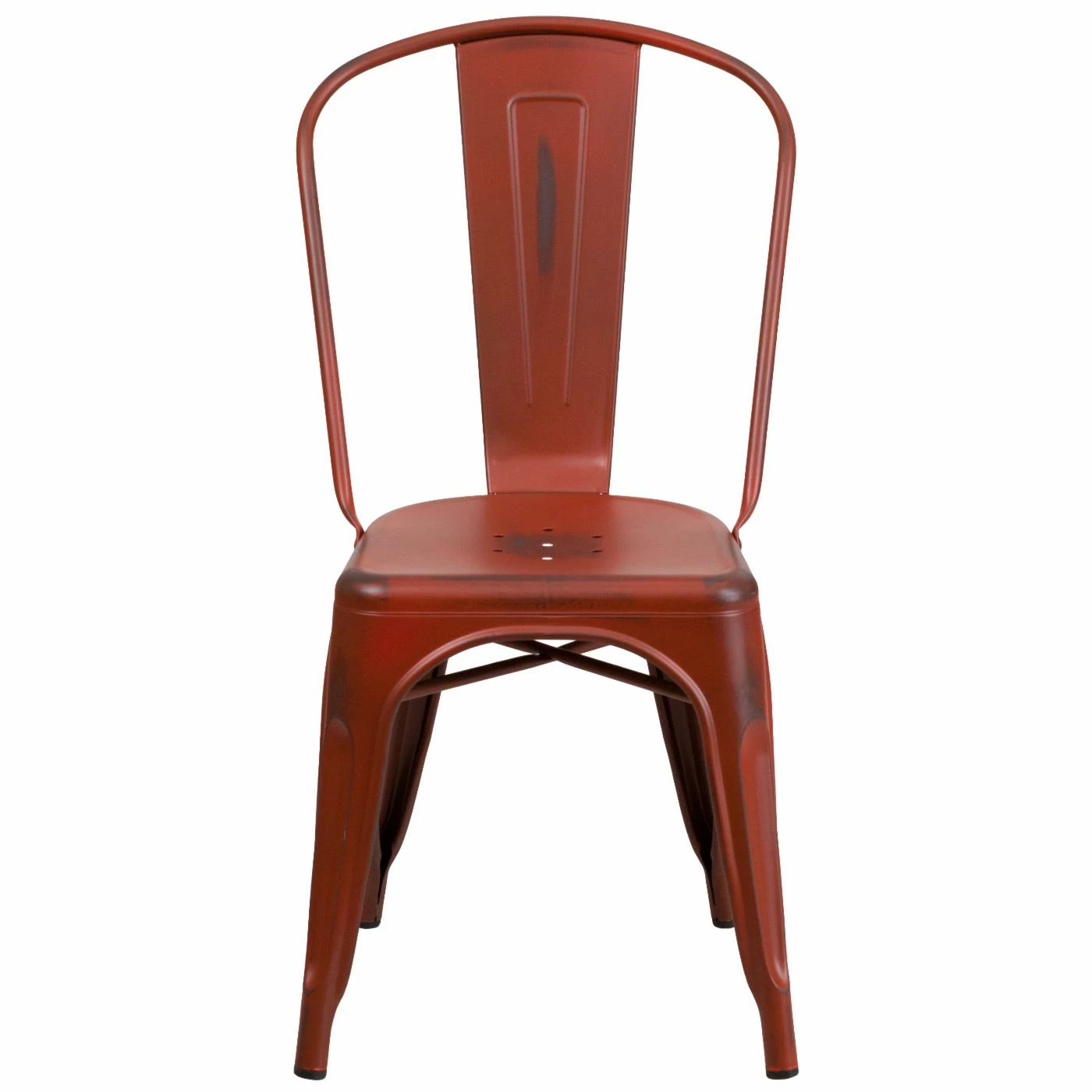 With its industrial chic look and distressed finish options, this Flash Furniture ET-3534 Distressed Metal Indoor Stackable Chair is a handsome seating option. This impressively lightweight metal chair has a European bistro vibe. It’s equipped with protective rubber on the legs and can be used indoors or out.
