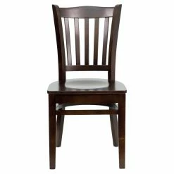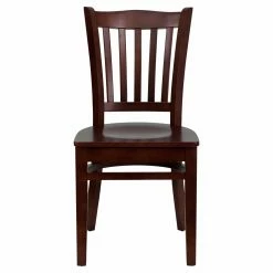 A supportive tall slat back and contoured seat will have guests lingering for hours on the Flash Furniture Hercules 17.75 in. Cherry Vertical Slat Back Restaurant Chair. This heavy-duty chair is able to hold up to everyday wear in restaurants and bars, thanks to its solid European beech hardwood mortise-and-tenon construction and metal wood screw reinforcements. Offered in your choice of available finishes, the all-wood chair can complement a wide range of color palettes and decorative styles. Plastic glides on the legs reduce wear on hard floors.