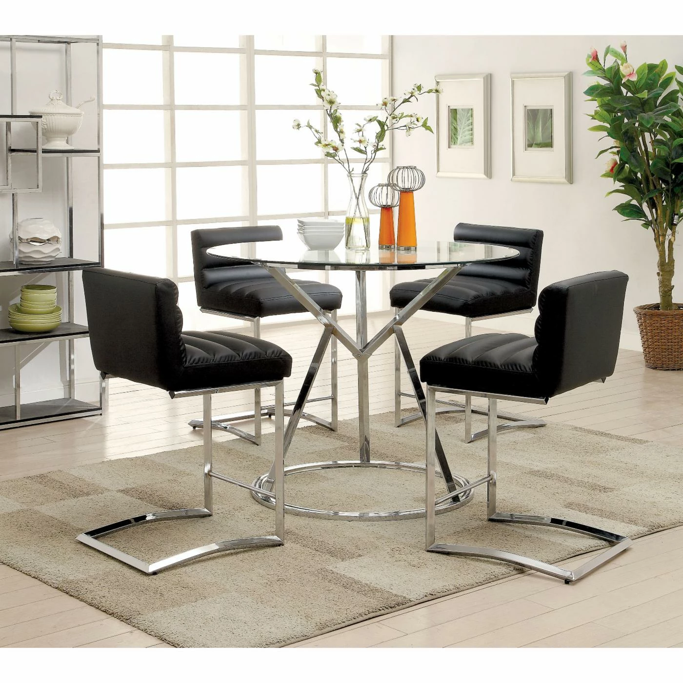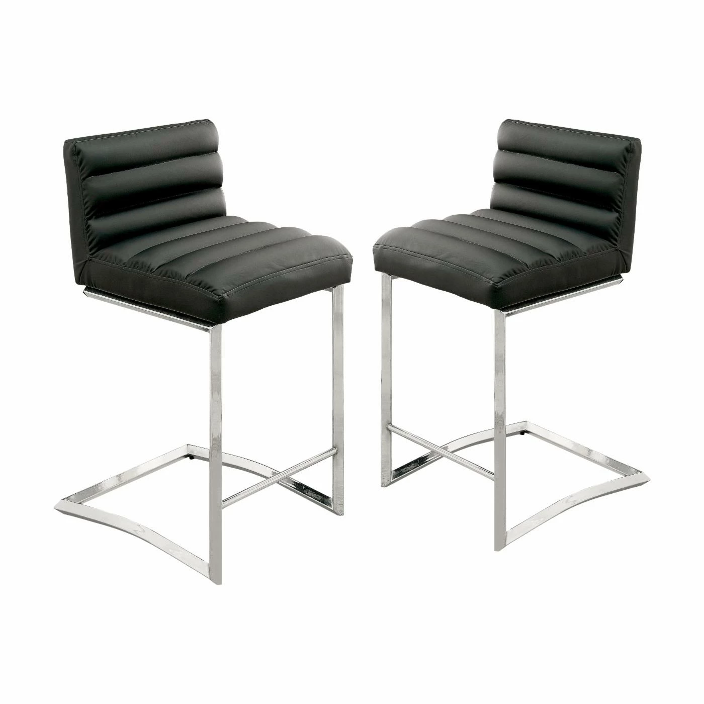 Deep baffle tufting adds comfortable luxury to the faux leather upholstered Furniture of America Delano Contemporary Style Counter Height Dining Chair – Set of 2. These two dining chairs seat guests at counter height, making them ideal for completing your chat table or sliding up to the breakfast counter. They feature cantilevered bases with built-in footrest bar, and come in polished chrome. The set includes two counter height chairs.