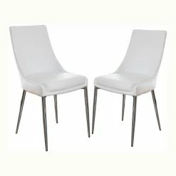 The Furniture of America Lloyd Contemporary Dining Chair – Set of 2 is a minimalist modern addition to your dining table. Each of the chairs sits on chrome metal legs. Thick foam padding rests on the faux leather upholstery of these dining chairs. Choose from available color options.