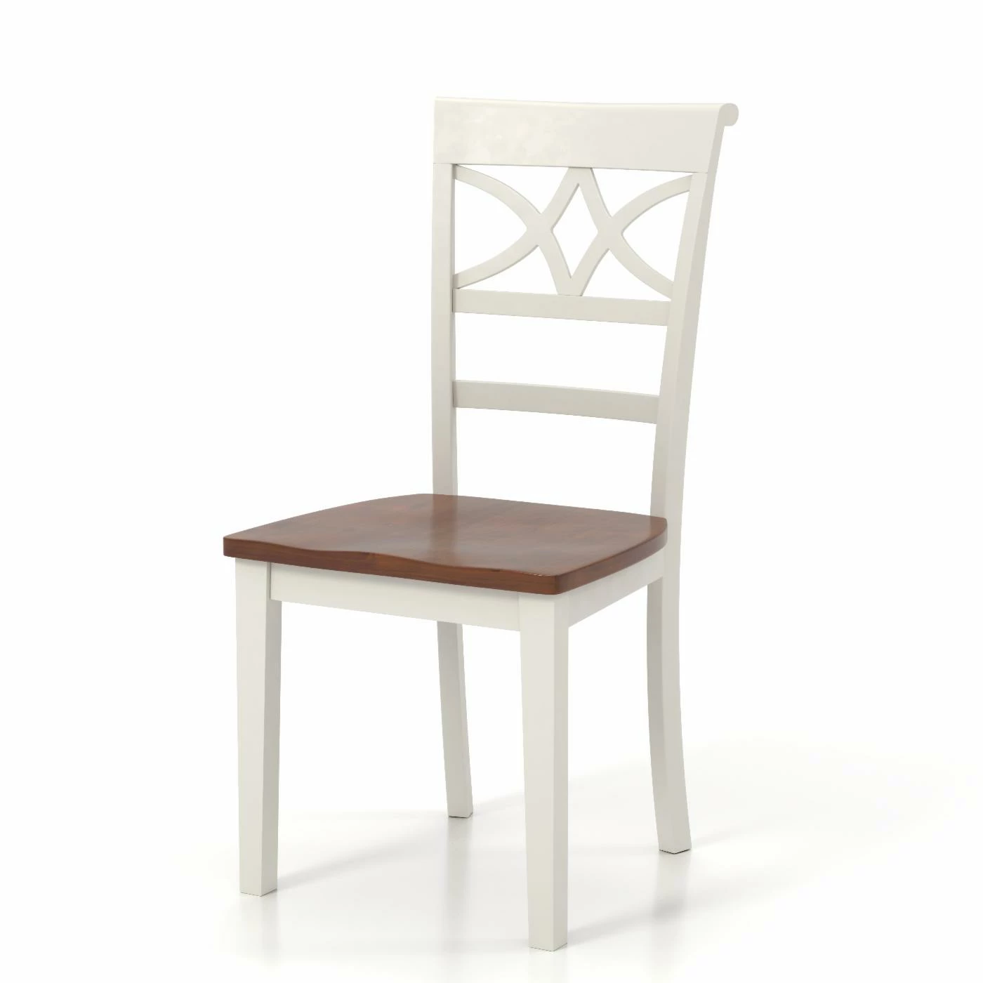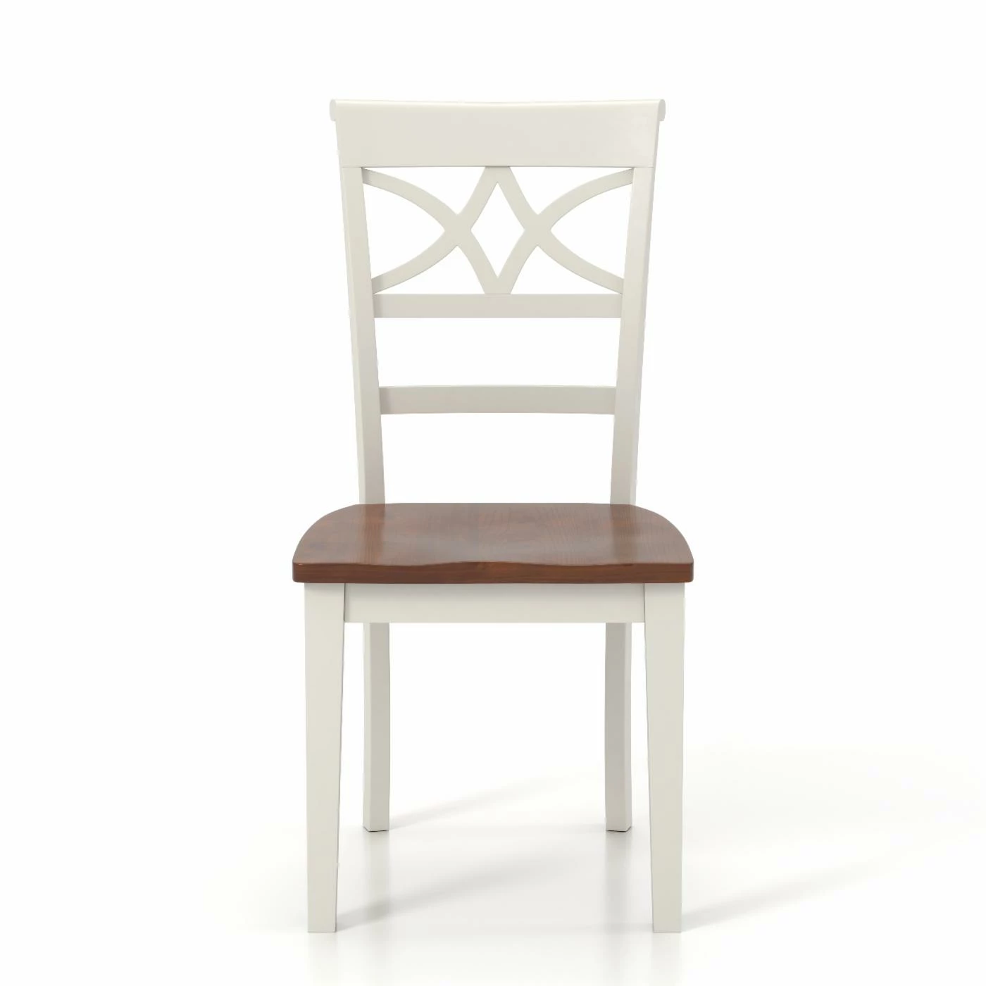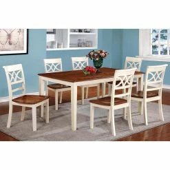 The cherry and cream Furniture of America Seaberg Country 2 Tone Chair – Set of 2 adds comfortable cottage style to your kitchen or dining room table. These hardwood and veneer chairs feature sleekly grooved seats for increased comfort and intricately curved back detailing for greater visual interest in your favorite gathering space. The frame of this chair is available in your choice of color.