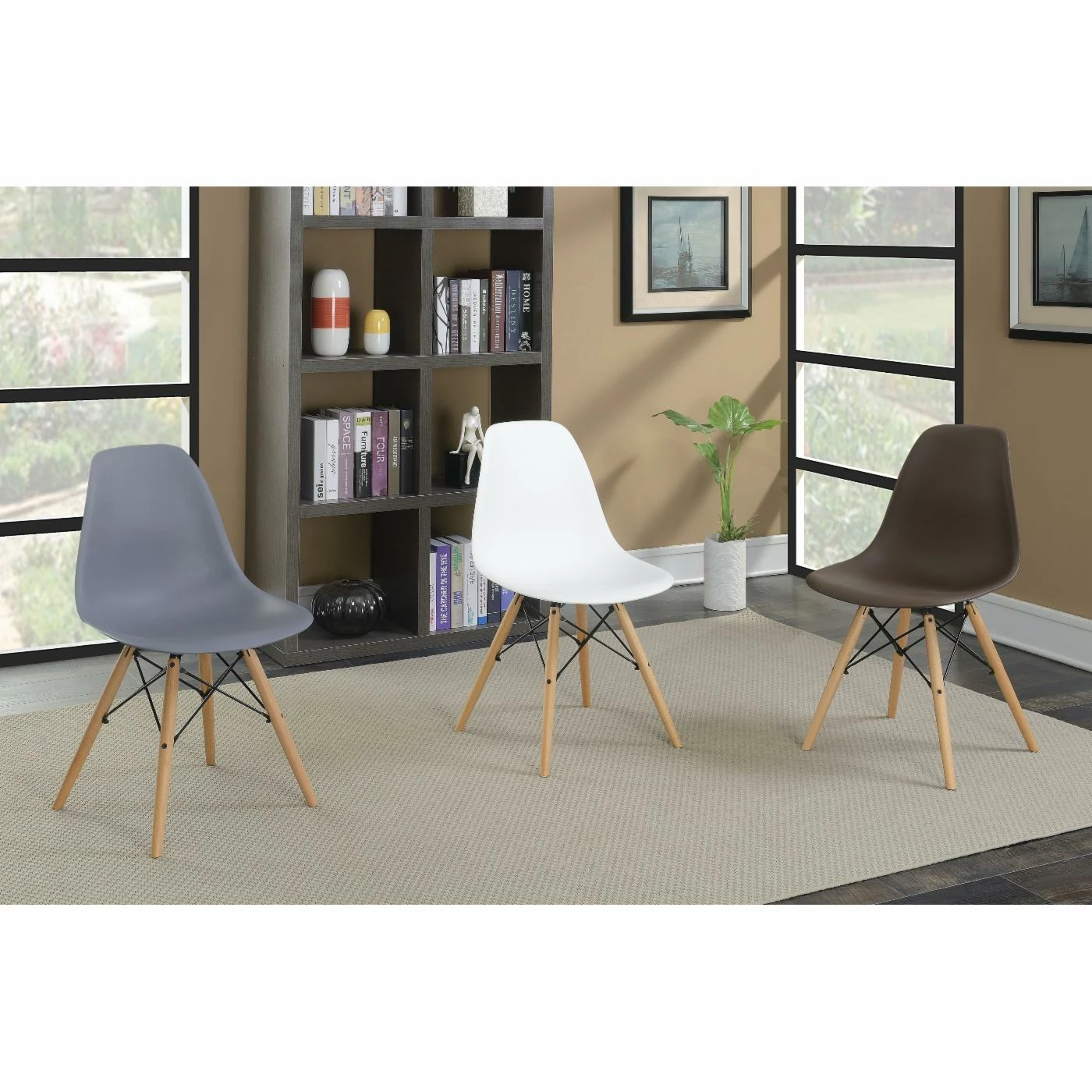 The Furniture of America Shego II Modern Dining Side Chair – Set of 2 helps you to easily outfit your new modern kitchen or dining room with streamlined modern seating. This set includes two matching chairs. Each chair is supported by splayed, mid-century-style legs. Metal stretchers provide additional support. The armless seats come made from single-piece molded polypropylene plastic that’s both durable and comfortable. Choose from available colors.