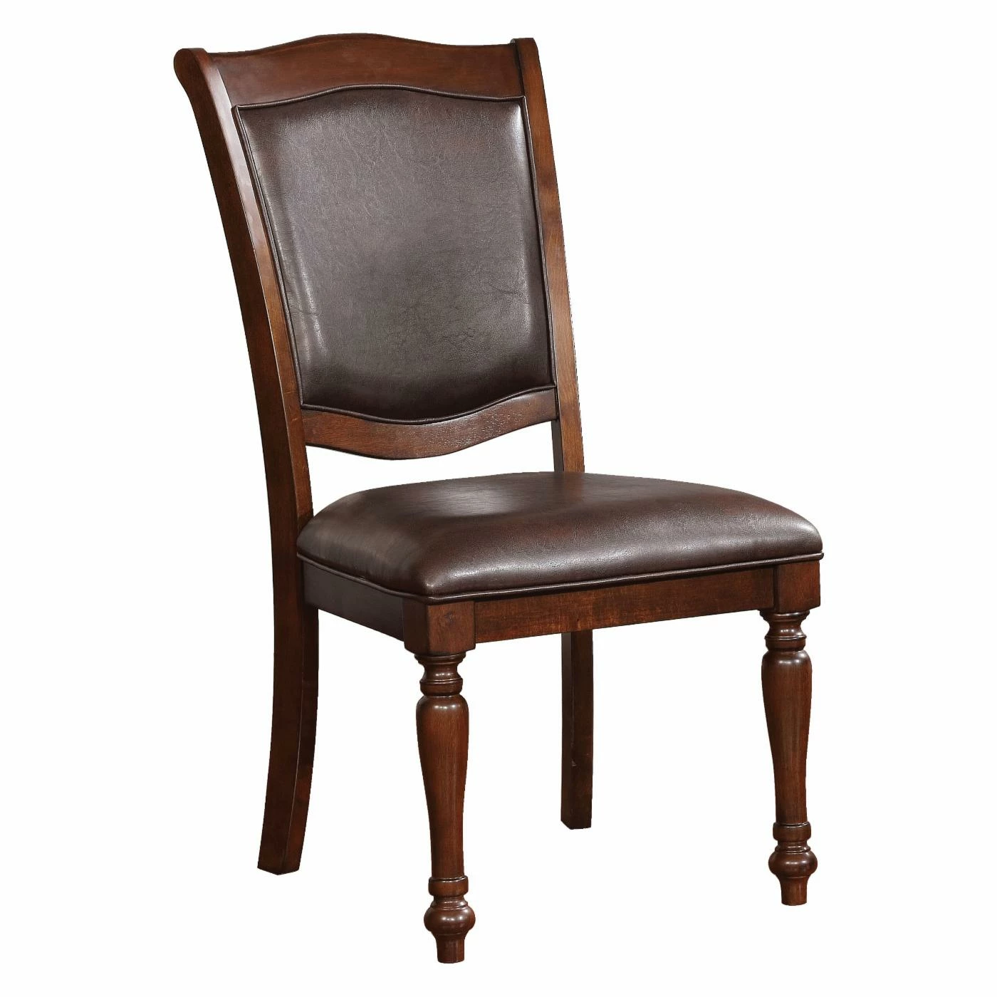 - Brown faux leather upholstery; mahogany finish