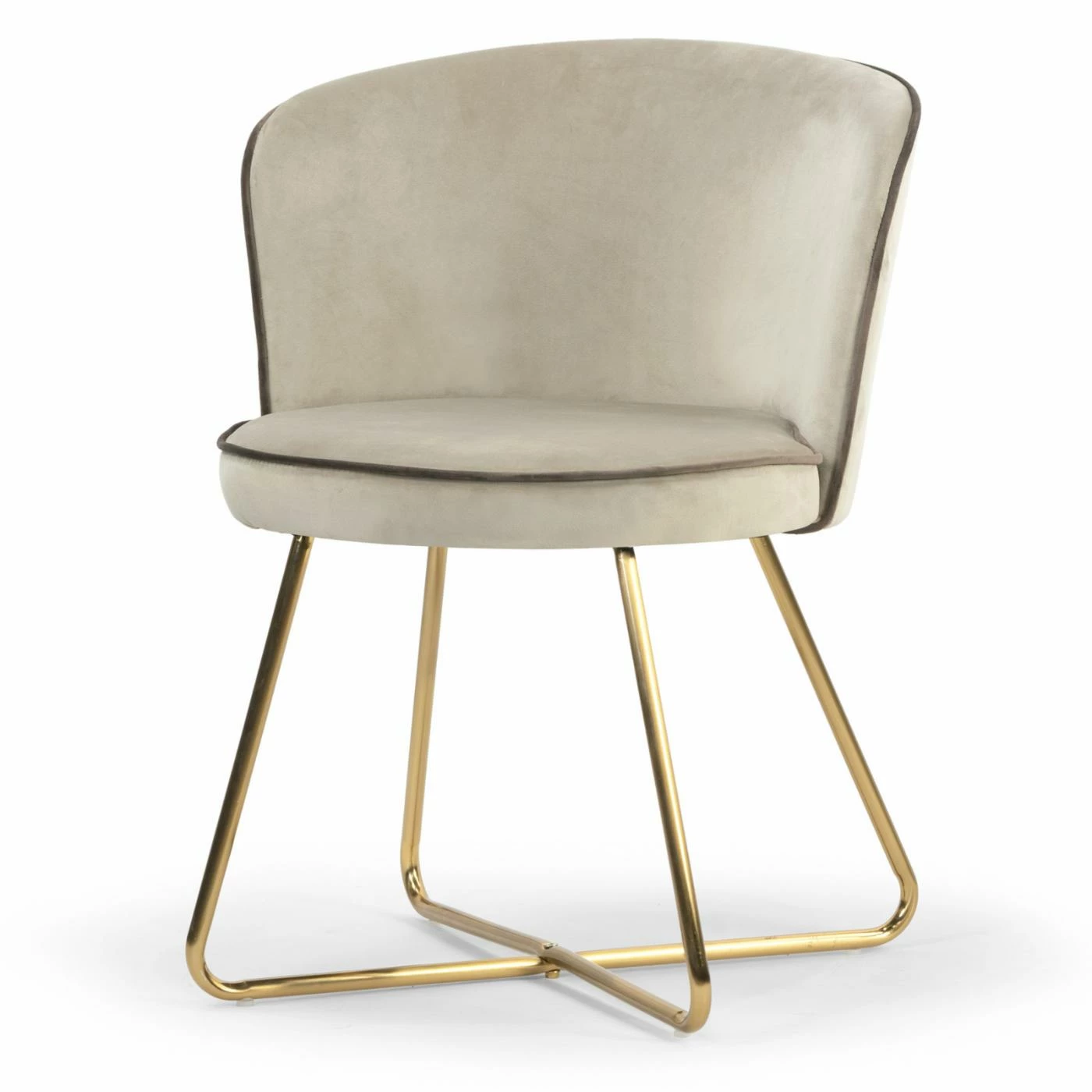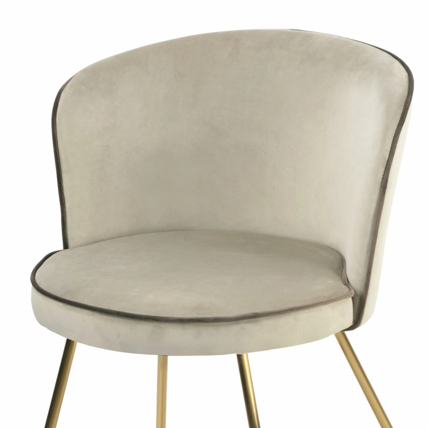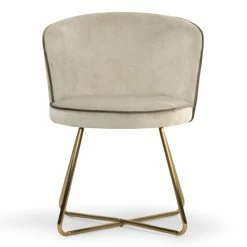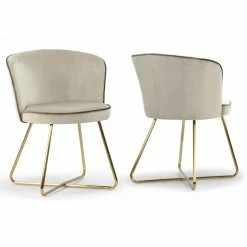 Make a stylish statement in your dining space with theΒ Glamour Home Anila Velvet Dining Chair with Piping – Set of 2. This elegant set of dining chairs boasts a glamorous, contemporary silhouette with modern rounded seats and sleek X-shaped bases. Cream-colored velvet, contrasting brown piping, and polished gold legs provide a neutral color palette that still oozes luxury.
