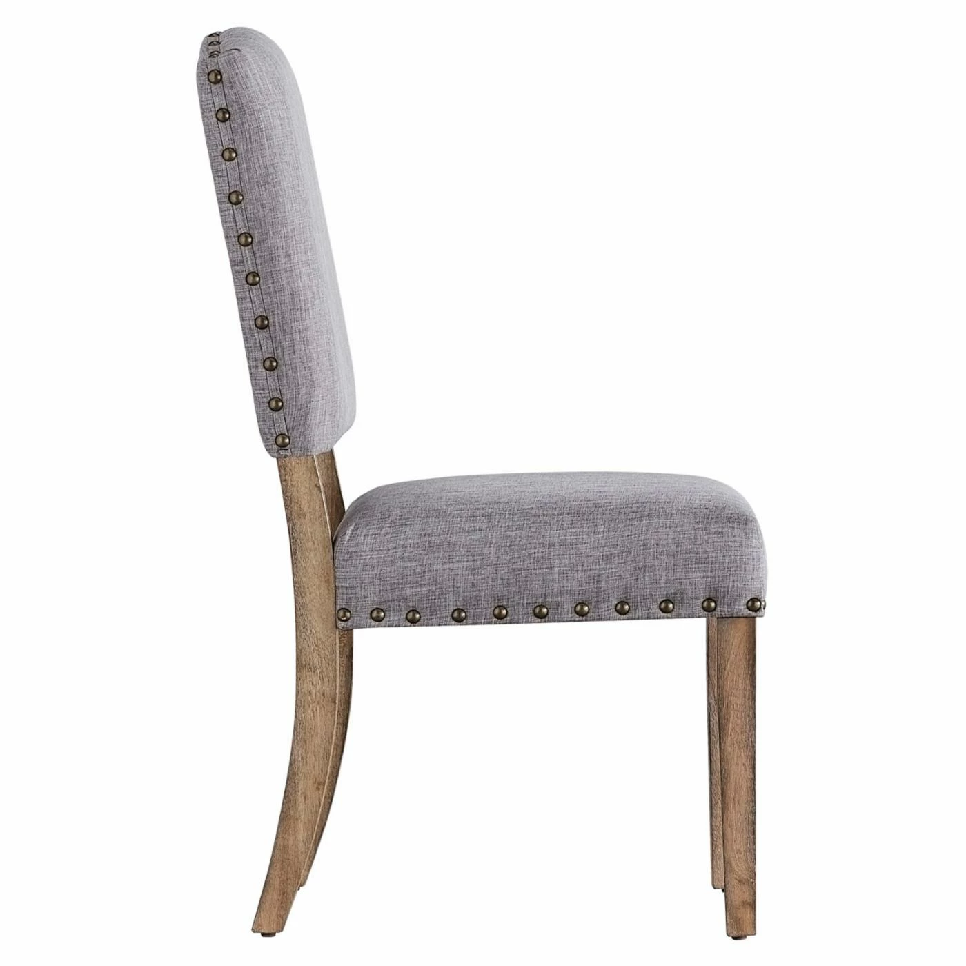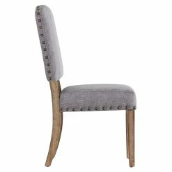 Lend an elegant vibe to your dining area with the HN Home Sparks Transitional Nailhead Dining Side Chair – Set of 2. Sophisticated linen upholstery covers the tall backs and amply cushioned 5.5-inch thick seats of these traditional dining chairs. To ensure durability, the chairs are fabricated out of sturdy wood. A nailhead trim run along the contours of the backrest and seat for a final touch of polish.