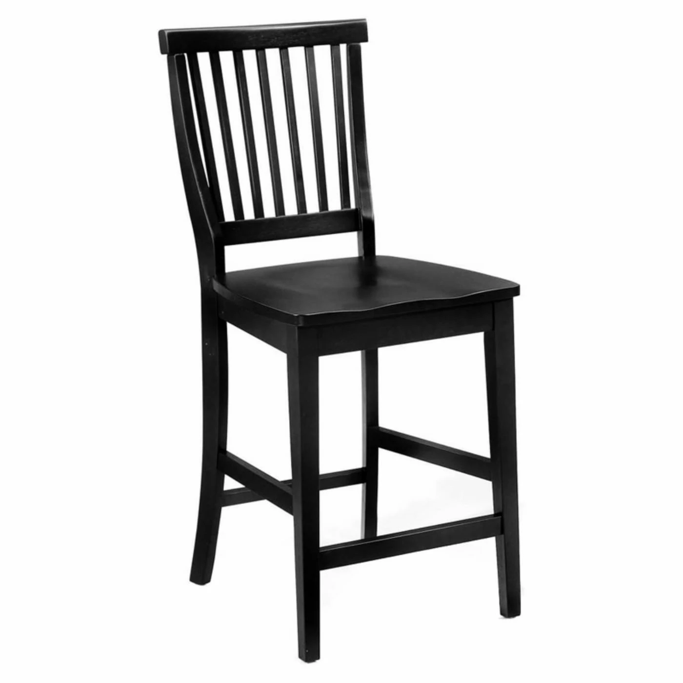 With its classic style and pub height, this Arts and Crafts 24 in. Counter Stool by Home Styles, blends beautifully with any kitchen or dining decor. Constructed of solid wood, this stool is finished in your choice of a lush cottage oak stain or ebony finish. The high, slatted back and contoured seat add comfort to this wonderful stool. Assembly required. Dimensions: 17.75W x 22.25D x 40.5H inches.