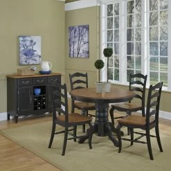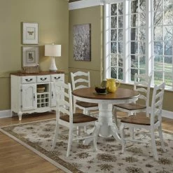 Seat guests in style with the Home Styles The French Countryside Oak Dining Chairs – Set of 2. This set includes two dining chairs crafted of rubberwood solids and engineered wood. The chairs feature a waved ladder back design and flared legs in a hand-rubbed finish color of your choice. The contoured seats are finished in warm, distressed oak.