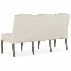 The Hooker Furniture Beaumont Upholstered Dining Bench brings transitional style and added seating to your dining space. Crafted from rubberwood and hardwood solids, this dining bench is upholstered in 100% Antwerp linen and accented with a bronze nailhead trim. To complete the look, the tapered legs are finished in a dark root beer tone on elm with an antique finish. A floating cross stitch treatment is given to the fabric. The Hooker Furniture Beaumont Upholstered Dining Bench requires some simple assembly and is covered by a manufacturerβs limited 1-year warranty.