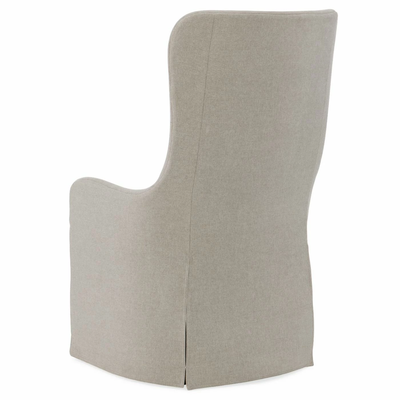 The Hooker Furniture Miramar Aventura Gustave Upholstered Dining Host Chair raise the bar when it comes to dining space updates. Crafted from oak solids, this chair’s frame is wrapped in a permanently attached slip cover in a crafty cement color. The slip cover is made of 95% polyester, 3% cotton, and 2% nylon. This high-back dining chair have a 250-lb. weight capacity and requires some simple assembly. Clean with the fabric with a water-based cleaning agent. The Hooker Furniture Miramar Aventura Gustave Upholstered Dining Host Chair is covered by a manufacturer’s limited 1-year warranty.