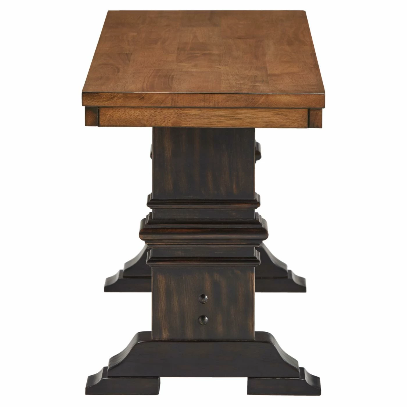 - Stately carved trestle base