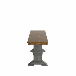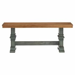 Supported by an intricately carved trestle base, the HumbleNest Countryside Farmhouse Dining Bench with Trestle Leg is a stately way to complete a rustic or country chic dining table. The bench is durable enough to hold up to the effects of daily dining, thanks to its solid hardwood construction. A carefully applied finish in your choice of available colors enhances the visual appeal of the timeless design.