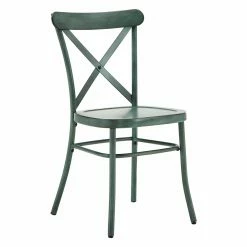 The HumbleNest Countryside Metal Cross Back Dining Side Chair – Set of 2 adds farmhouse warmth and inviting appeal to your dining room. These two dining side chairs are made of a durable, lightweight metal. The wood-look finish in your choice of available color adds a rustic look while the X-crossed backs give the chairs a cottage aesthetic.