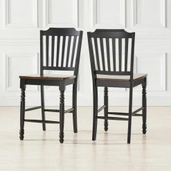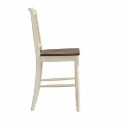 Dine at the breakfast bar or your counter-height table in comfortable, casual chic style with the HumbleNest Homestead Counter Height Distressed Dining Side Chair – Set of 2. The sturdy solid and engineered wood side chairs feature scoop seats and tall vine backs to support you while you enjoy meals. Turned legs put an elegant finishing touch on the rustic two-tone design. Some assembly required.