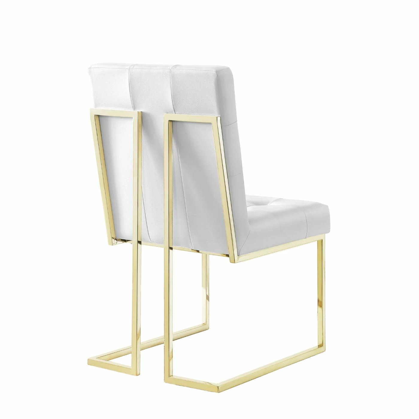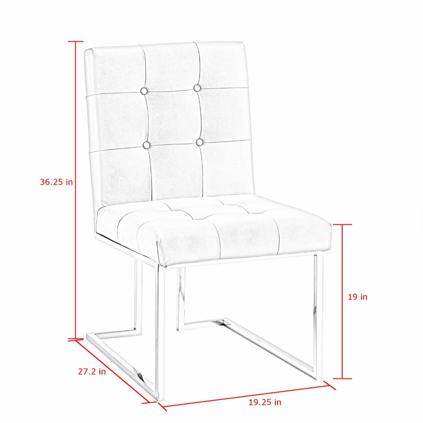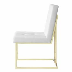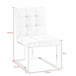 Kick your dΓ©cor up a notch with the Inspired Home Stevenson Armless Dining Side Chair – Set of 2. These geometric marvels will make a statement in any room you put them in. The polished steel frame wraps around the chairs and adds art deco detail to the backs. It also functions as a sturdy base. Square button tufting lends an air of elegance to the retro glam style. The armless nature of these chairs means that they’re easy to store under tables and offer more seating options for guests. Choose from available upholstery options to best match your home. Some assembly required.