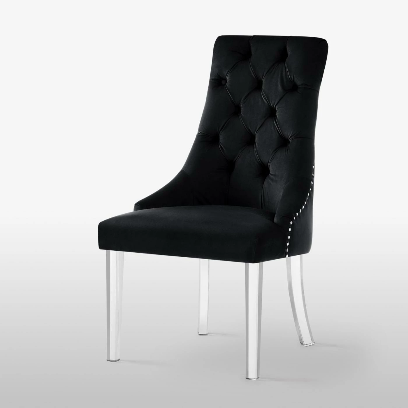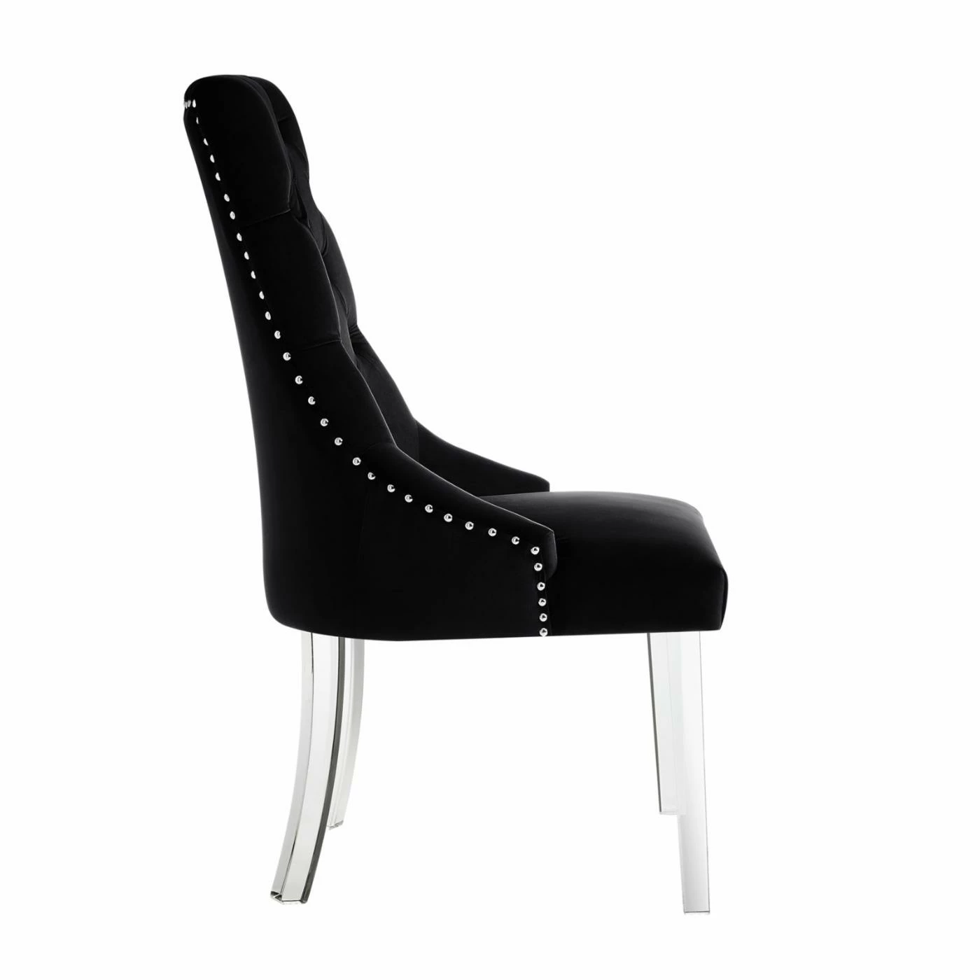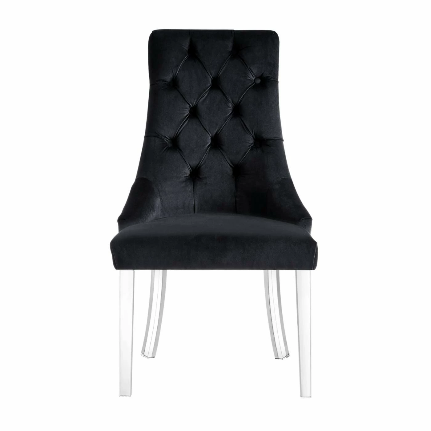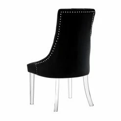 Make your dining room more glamorous with the addition of the Inspired Home Valeria Velvet Upholstered Dining Side Chair – Set of 2. This dining chair features an angled back that curves around the seat for a winged effect. The style lines are enhanced with gleaming nailhead trim details. Clear acrylic legs offer durable support and a glamorous finishing touch. Choose from available color options to make it yours. Assembly required.