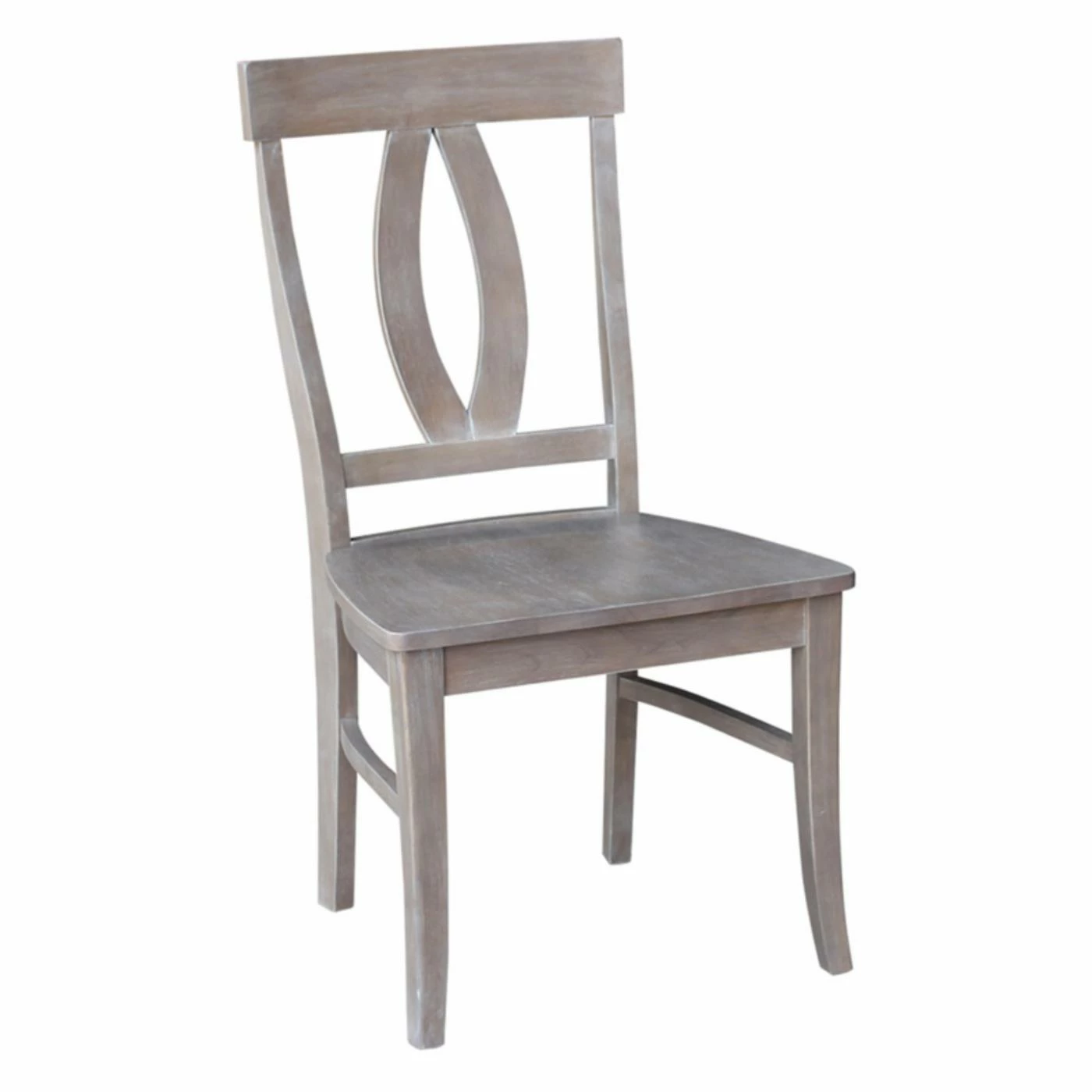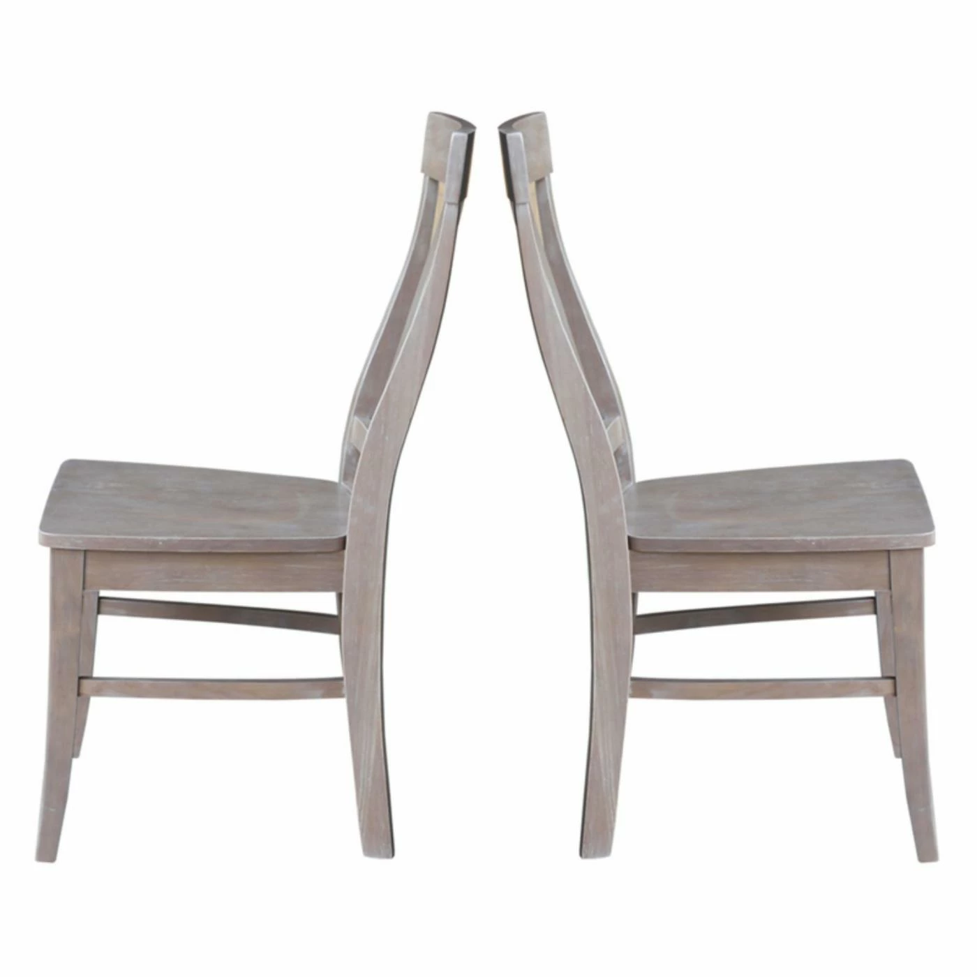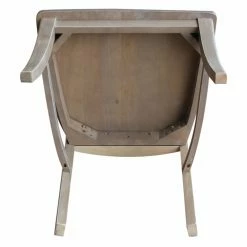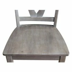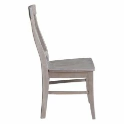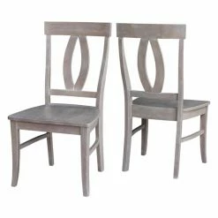 The curved keyhole back design and washed gray taupe finish give the International Concepts Cosmo Chair with Washed Finish – Set of 2 its modern farmhouse appeal. This set includes two solid wood dining chairs.