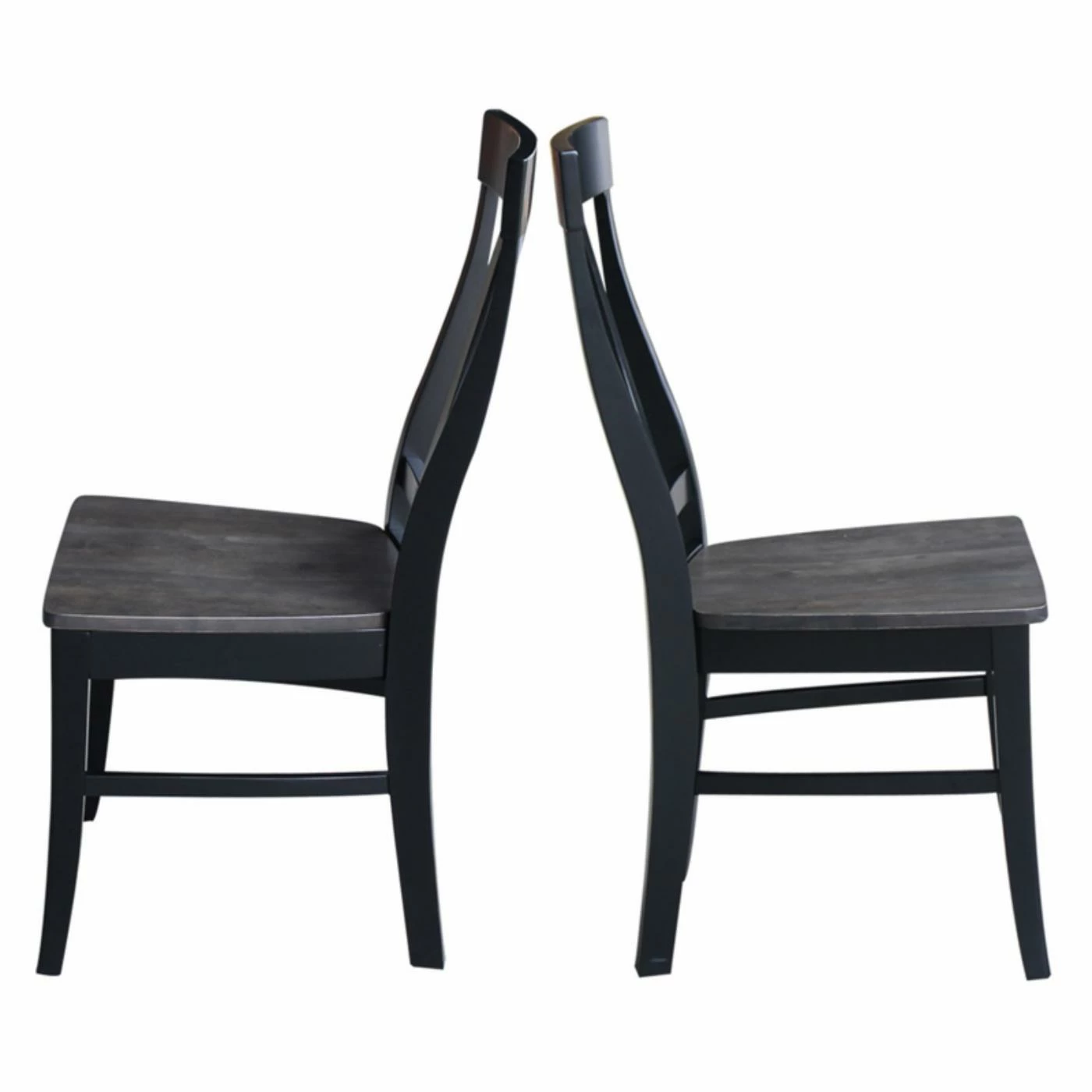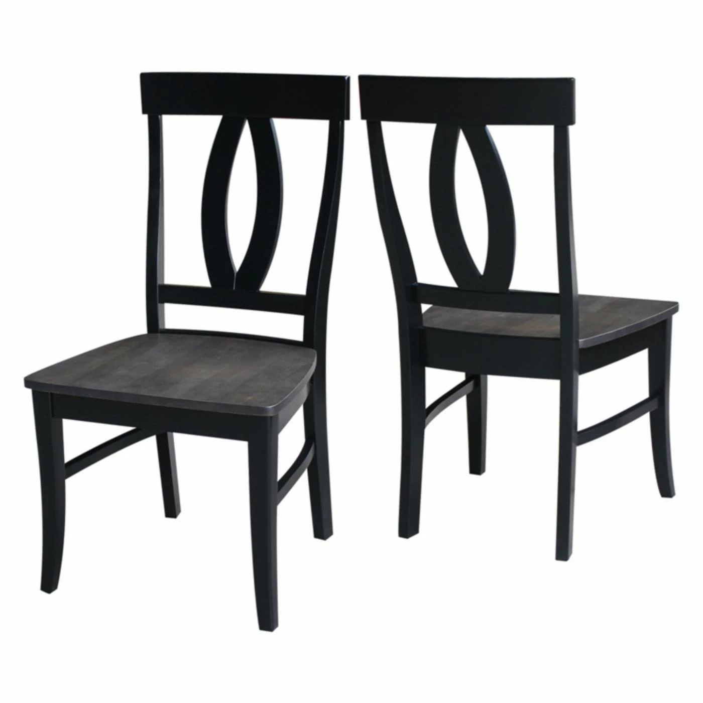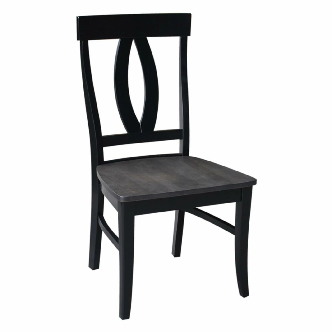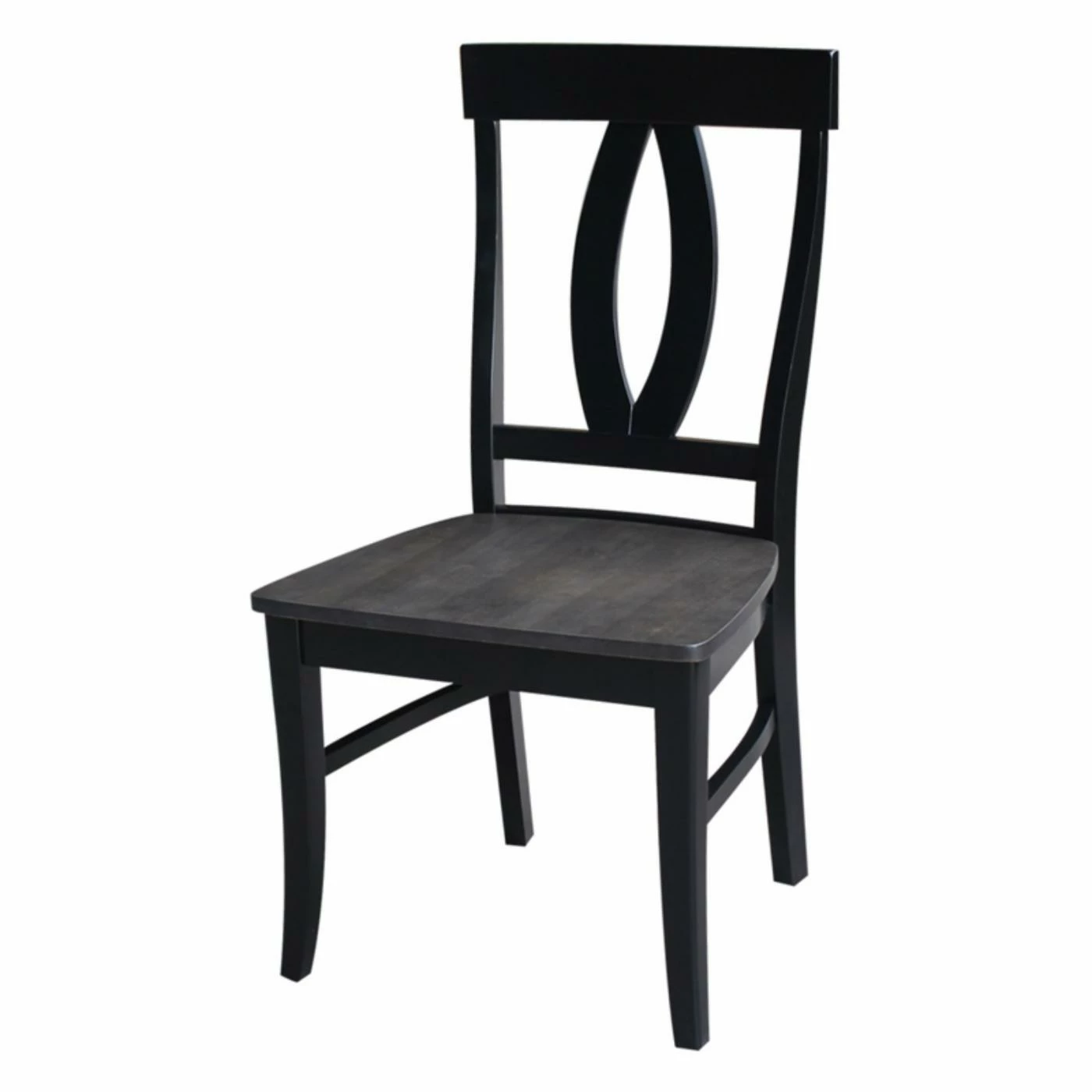 A keyhole splat back design and weathered black finish make the International Concepts Cosmo Splatback Chair a chic example of modern farmhouse style. This dining chair is built from solid wood and graced with a comfortably contoured wood seat.