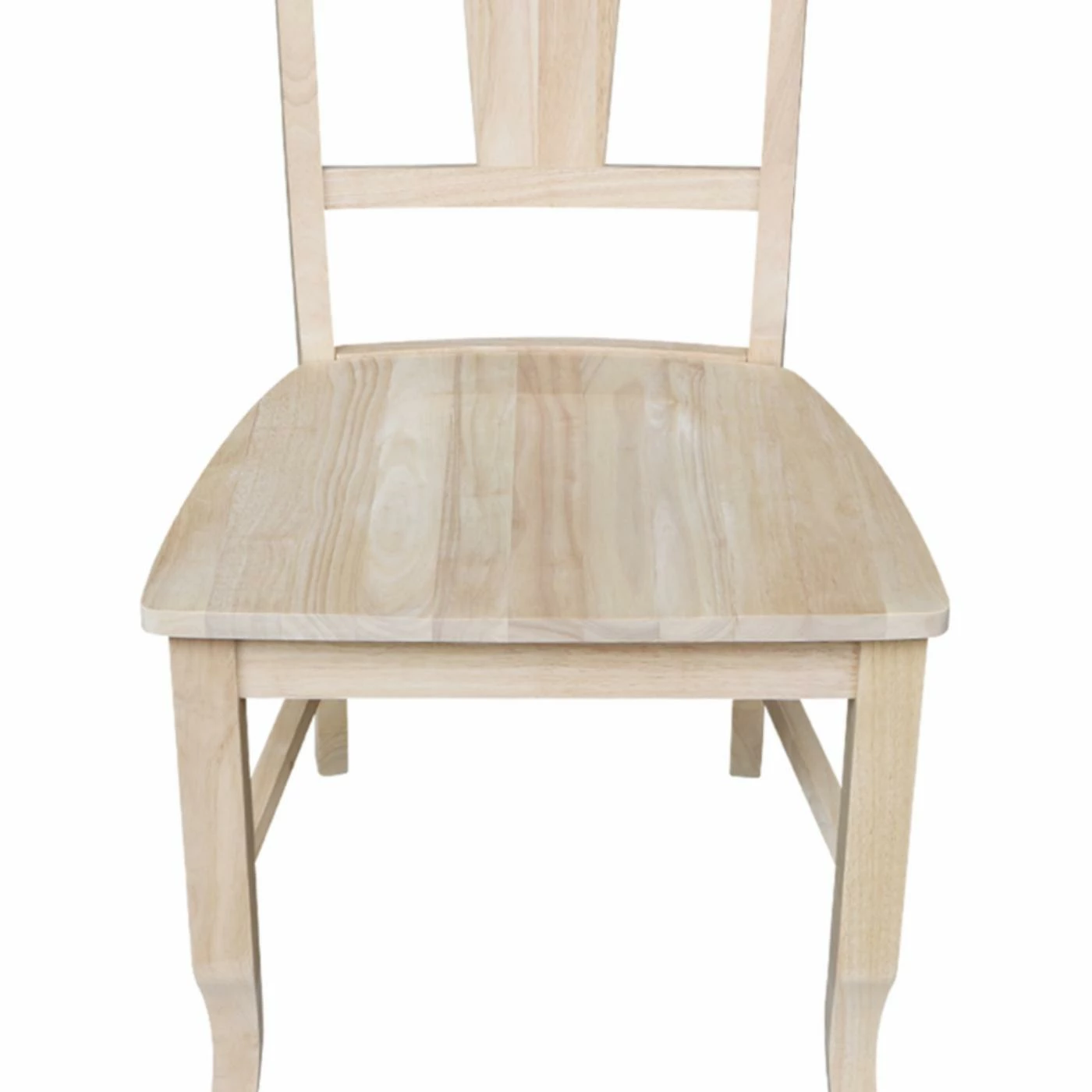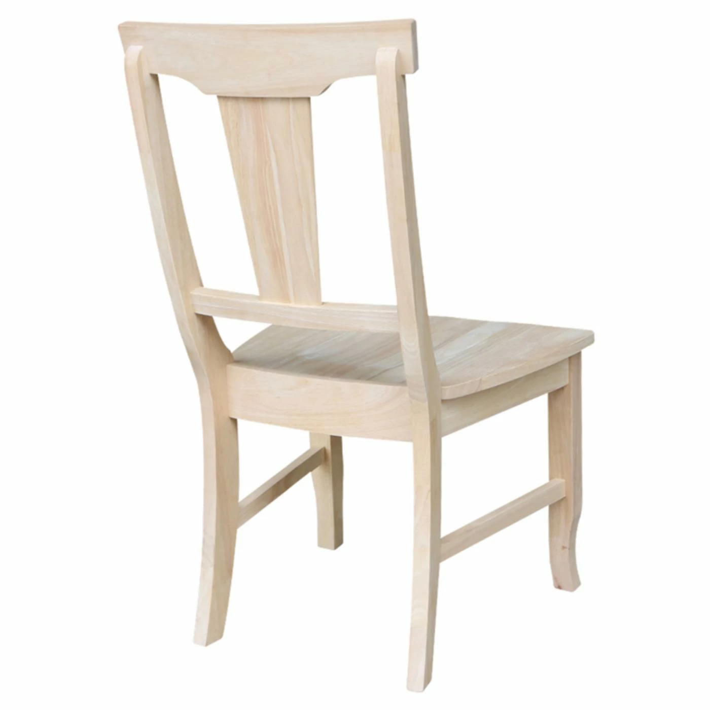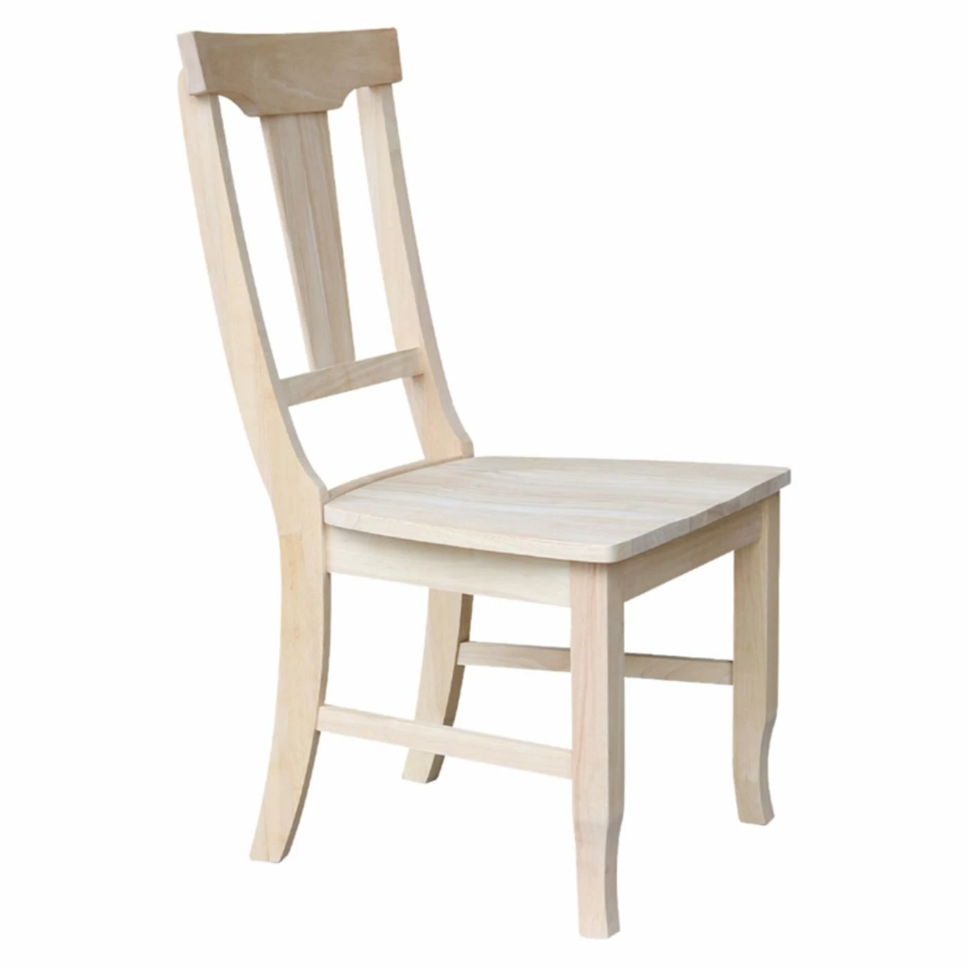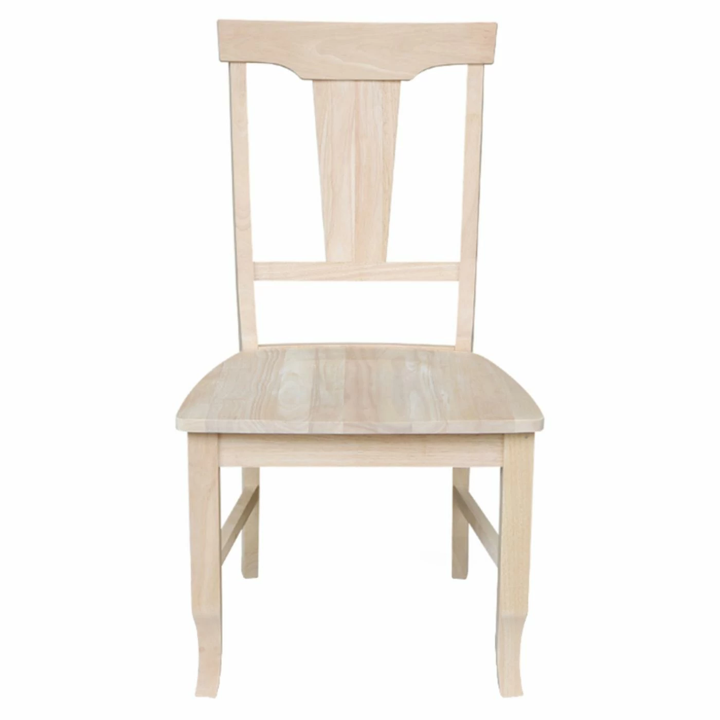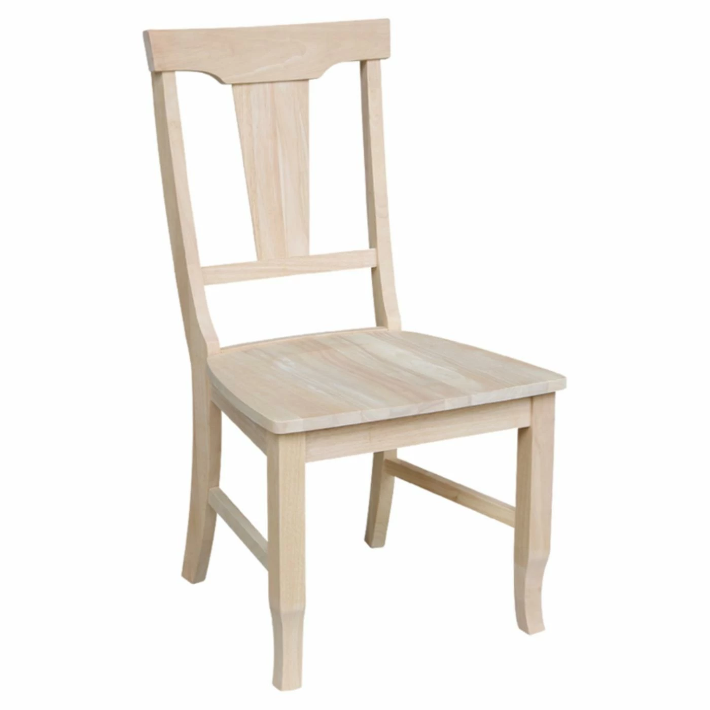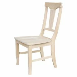 The old-world style of the International Concepts Monetta Panel Back Dining Chairs – Set of 2 conjures up images of cozy English gardens, Tuscan villas overlooking the vineyards, and the occasional beanstalk growing into the clouds where there might be giants. We know that magic beans aren’t a real thing, but everything that we love about this charming chair is very real. Each chair is made from unfinished parawood (also known as rubberwood), a material that shows off a flowing grain while providing excellent strength when used in furniture construction. The curved back features a central panel that echoes the gentle cuts and curves of the front legs. A contoured seat offers comfort, while the box-construction beneath the seat provides additional strength to the structure.