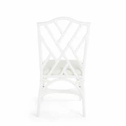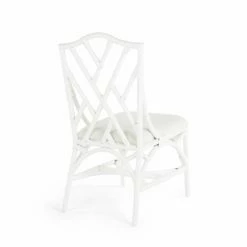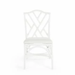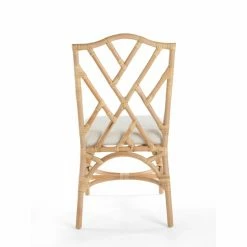 If only every season was patio season. The KOUBOO Rattan Chippendale Upholstered Dining Chair – Set of 2 softens the blow of cold days by bringing the warm feel of island breezes to your indoor dining and entertaining spaces. Hand-crafted with natural-grown rattan, each of the two chairs in this set boast slim, high squared backs characteristic of classic Chippendale designs. Angled openwork defines the backs, while bent poles support the bases. Natural bindings add a rustic feel throughout. The padded seats are upholstered in smooth fabric. Choose from available color options to make it yours. No assembly required.