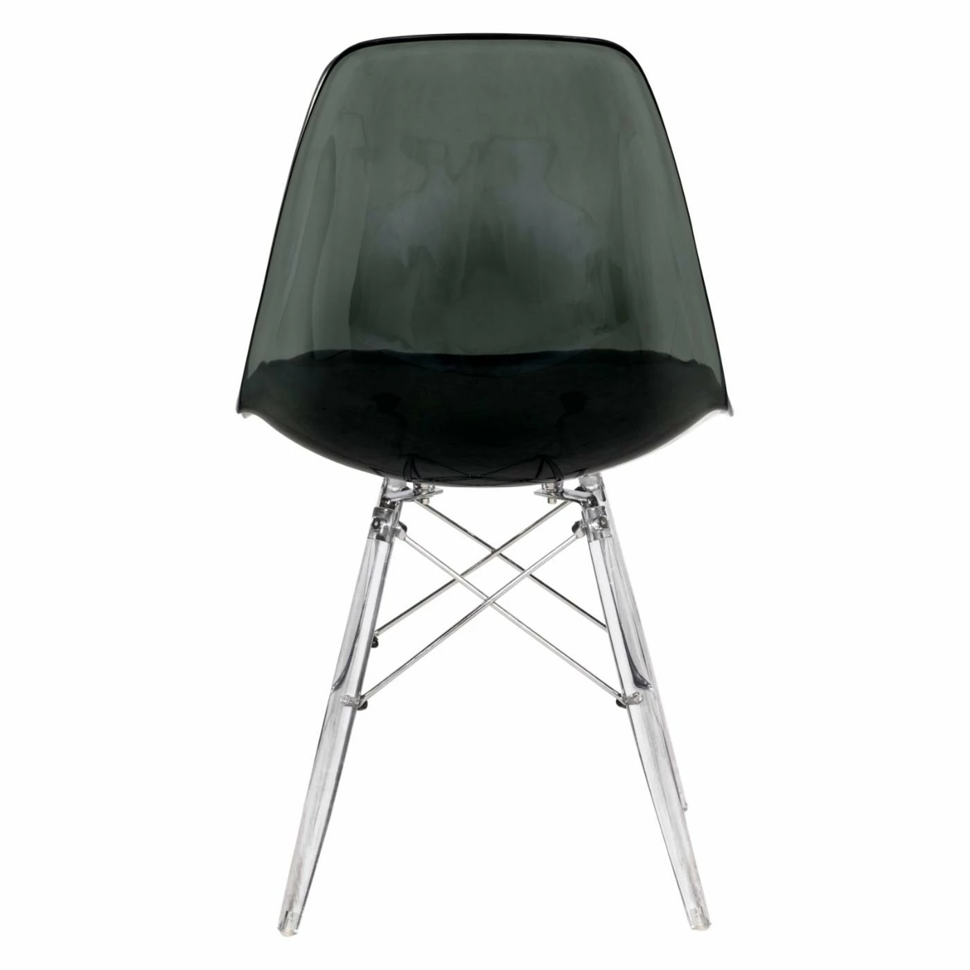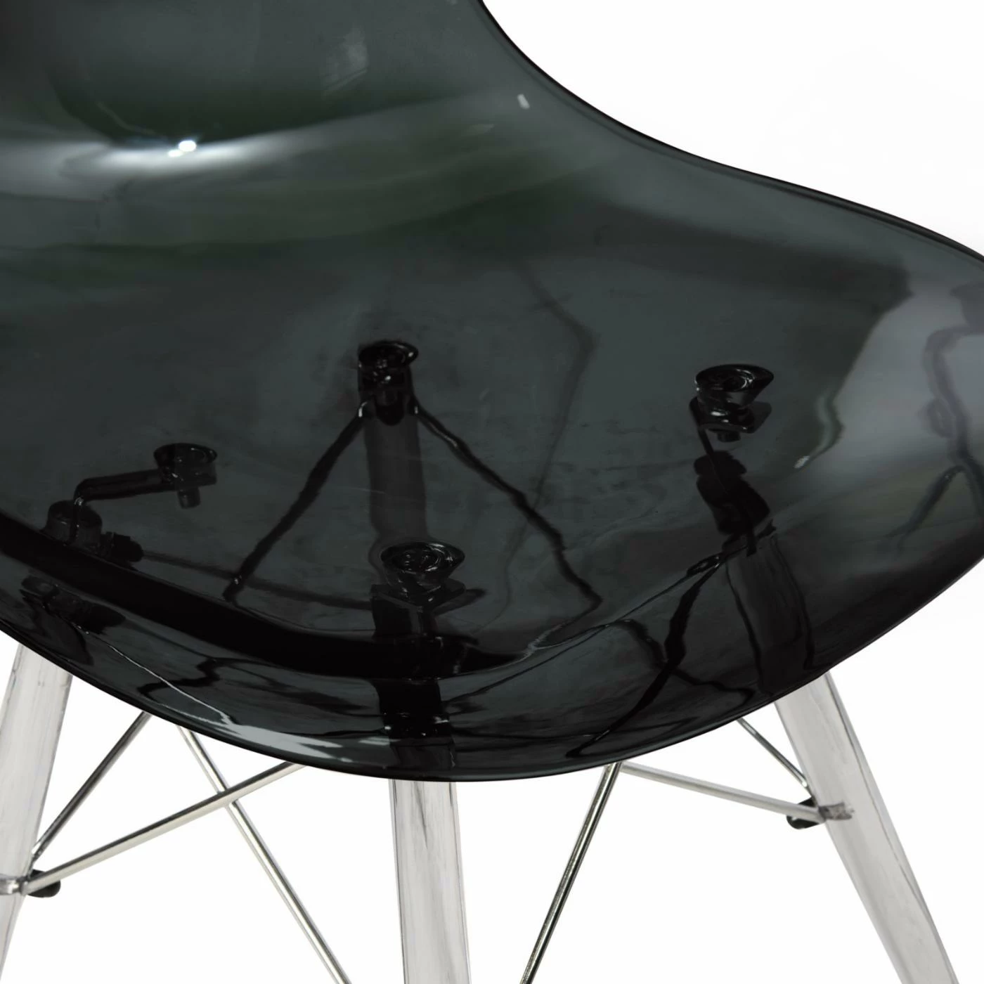 - Metal frame with clear acrylic legs and plastic seat