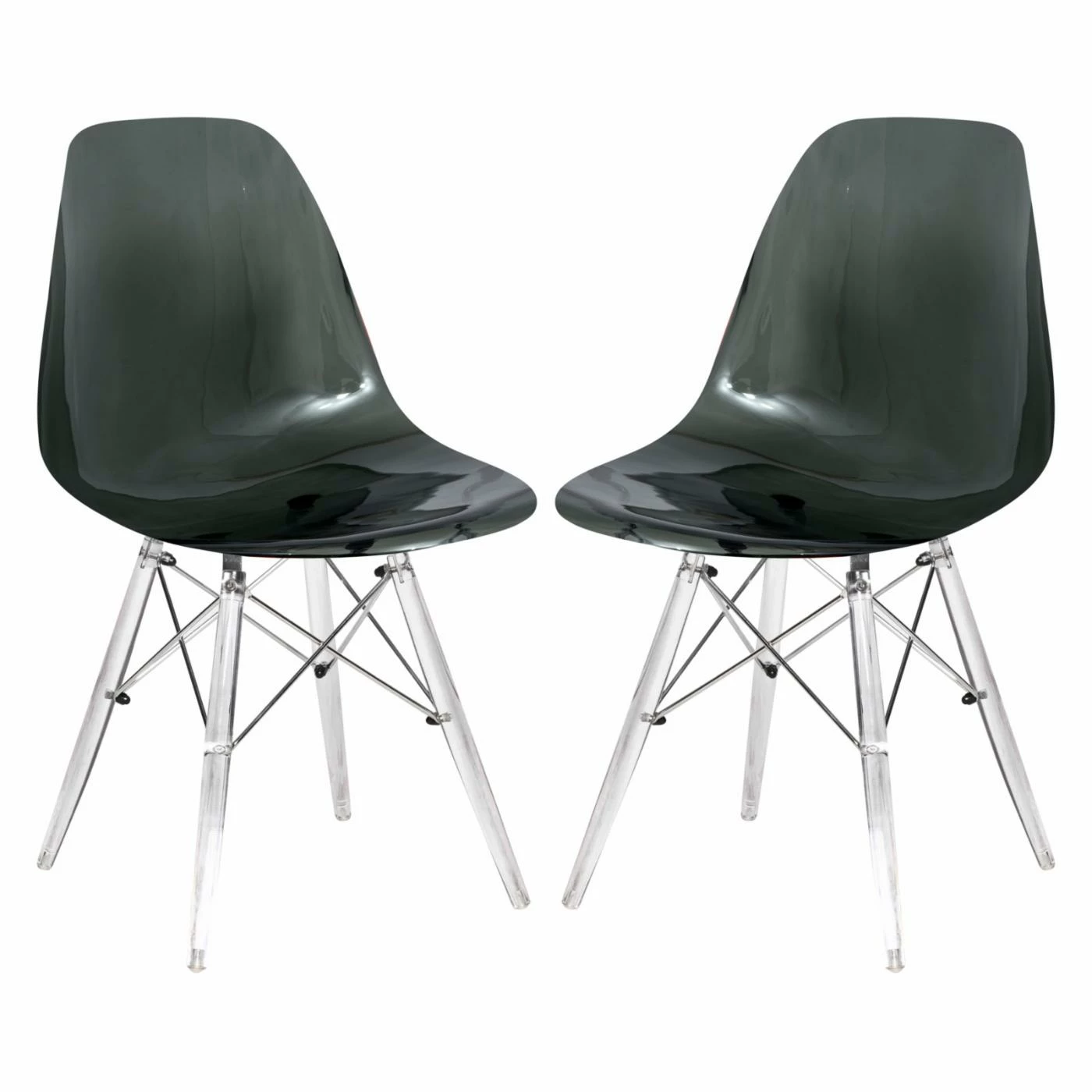 The LeisureMod Dover Molded Acrylic Base Side Chair – Set of 2 proves that mid-century style is still fresh and exciting. Clear acrylic dowel legs and metal cross braces bring a contemporary feel to this retro silhouette. The colored seats (choose from the available hues) are slightly transparent and they’re ergonomically molded to the shape of your body. The simple, sophisticated style makes these chairs just as at home in a dining room as they are in an office space.