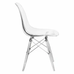 The ultra modern and chic LeisureMod Dover Molded Dining Side Chair with Acrylic Base updates your room. This sturdy metal and acrylic chair is available as a single or in set options, for versatile seating anywhere in your home. Transparent acrylic and shiny chrome give a clean, contemporary look. This armless dining chair offers you comfort while updating your home.