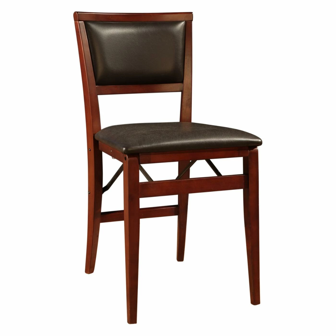 Contemporary and convenient, the Linon Keira Padded Folding Dining Chairs – Set of 2 is smart and stylish. When unexpected guests arrive for dinner these chairs fold out in a snap to accommodate. Wooden frames are finished in espresso brown to perfectly complement the dark brown faux leather upholstery.