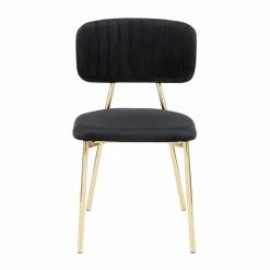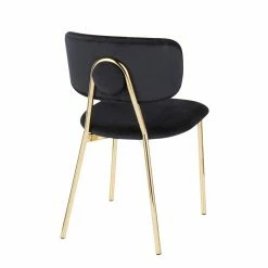 Elevate the style of your dining room with the LumiSource Bouton Contemporary/Glam Dining Side Chair – Set of 2. Each armless side chair features a metal frame and upholstered seat. The seat back is also upholstered, and vertical channel stitching adds visual interest to the piece.