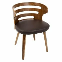 Cut-out details and a curved back make the LumiSource Cosi Mid-Century Modern Dining Chair a comfortable seating option with mid-century modern style. The generous seat on this dining chair is upholstered in brown faux leather that’s a easy to clean. Tapered wood legs support the seat in a matching walnut finish.