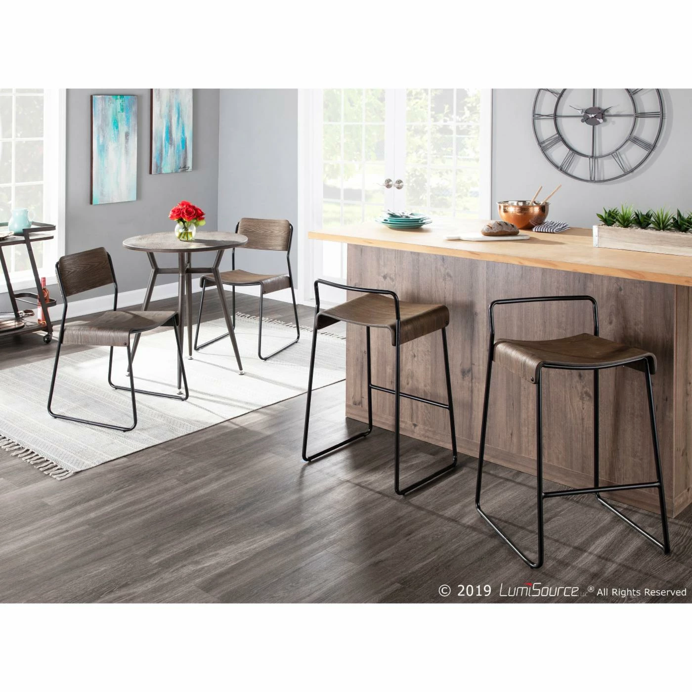 Bring contemporary style to your dining room with the LumiSource Dali Industrial Dining Side Chair – Set of 2. Each chair features a steel frame in a black finish. The bamboo seats and backs are in an espresso brown finish; the bamboo adds a slight rustic look to the chairs.