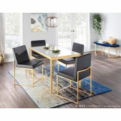 A little glitzy style without overwhelming your space, the LumiSource Fuji Contemporary Dining Side Chair – Set of 2 is a glam addition to your modern dining room. This pair of armless dining chairs features padded seats and backs with select available fabric upholstery. The simple frames are made of durable, strong steel and also come in your choice of available luxe finish. You can also add these chairs to your living room as extra accent seating.
