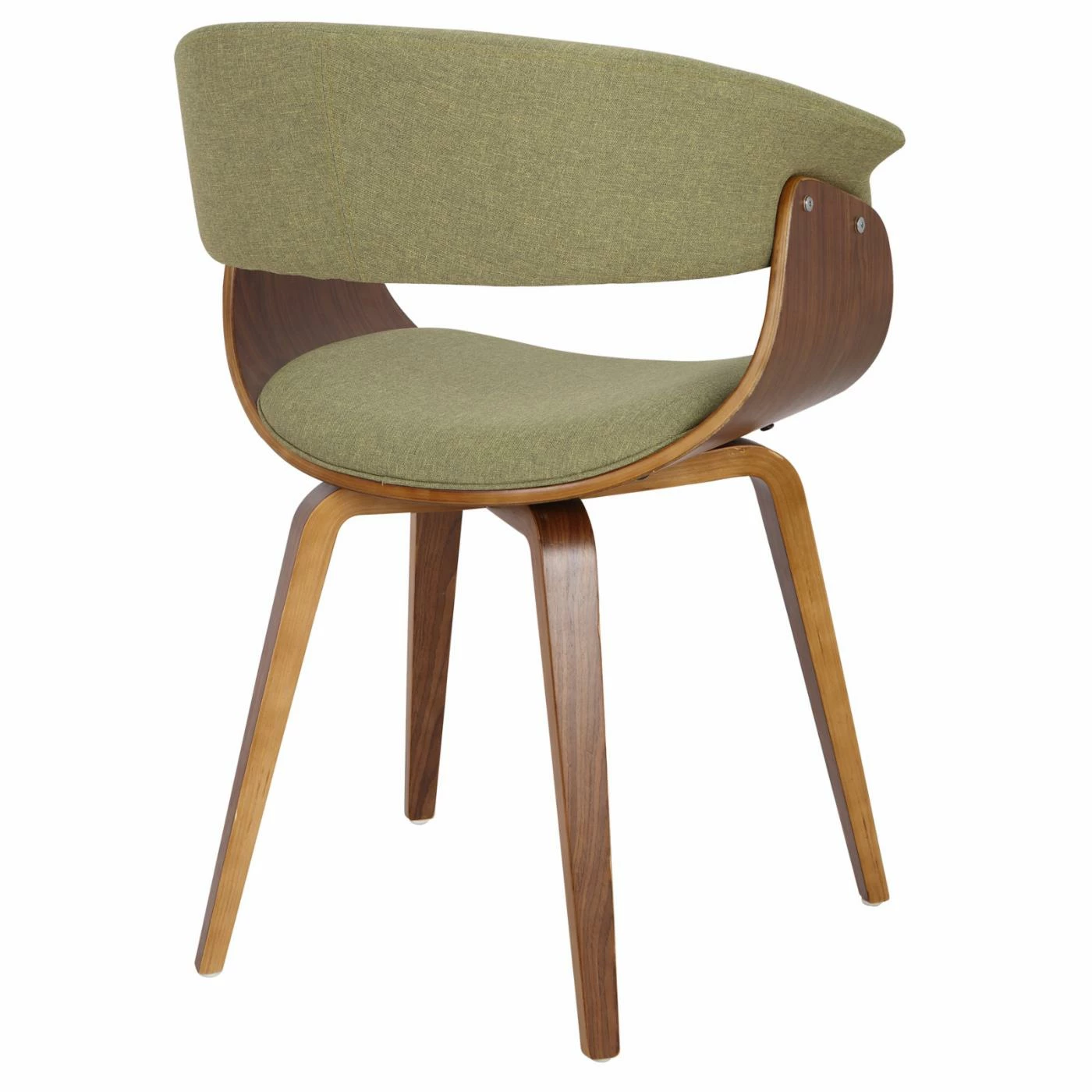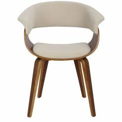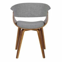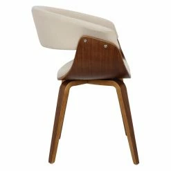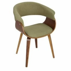 Give your dining room instant character with the LumiSource Vintage Dining Side Chair. This chair has a mid-century modern style for an authentic vintage look. Its sturdy wooden frame has a sophisticated walnut finish. You can customize this chair for your home by choosing from available upholstery colors. Enjoy sitting in comfort thanks to the curved back and arm rests.