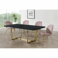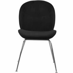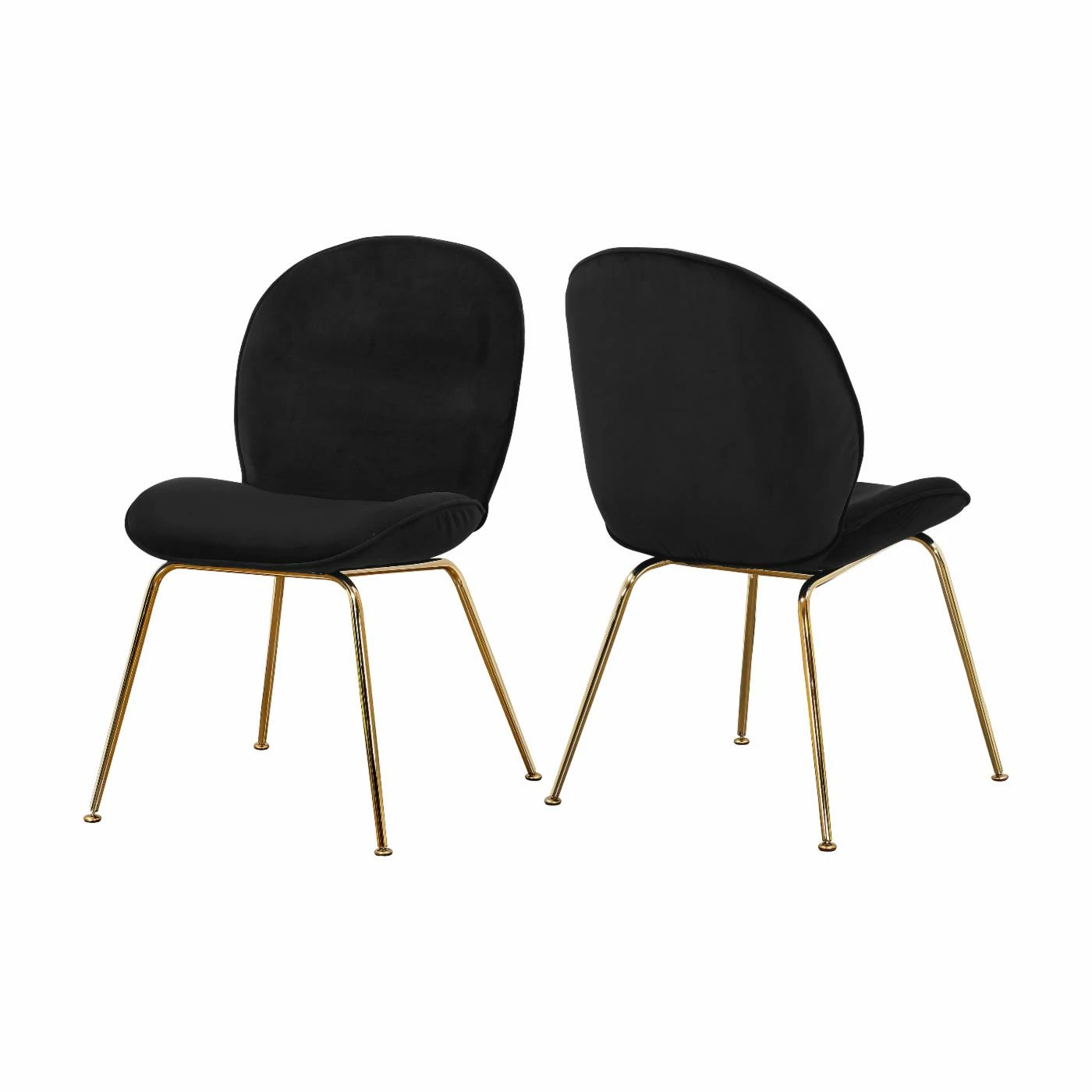 The Meridian Furniture Inc Paris Upholstered Dining Side Chair – Set of 2 is a comfortable take on a streamlined, modern look. The set includes two overstuffed dining stools upholstered in soft velvet. Slim steel legs offer stylish stability. The two chairs are upholstered in your choice of available velvet color with a coordinating metal finish on the legs