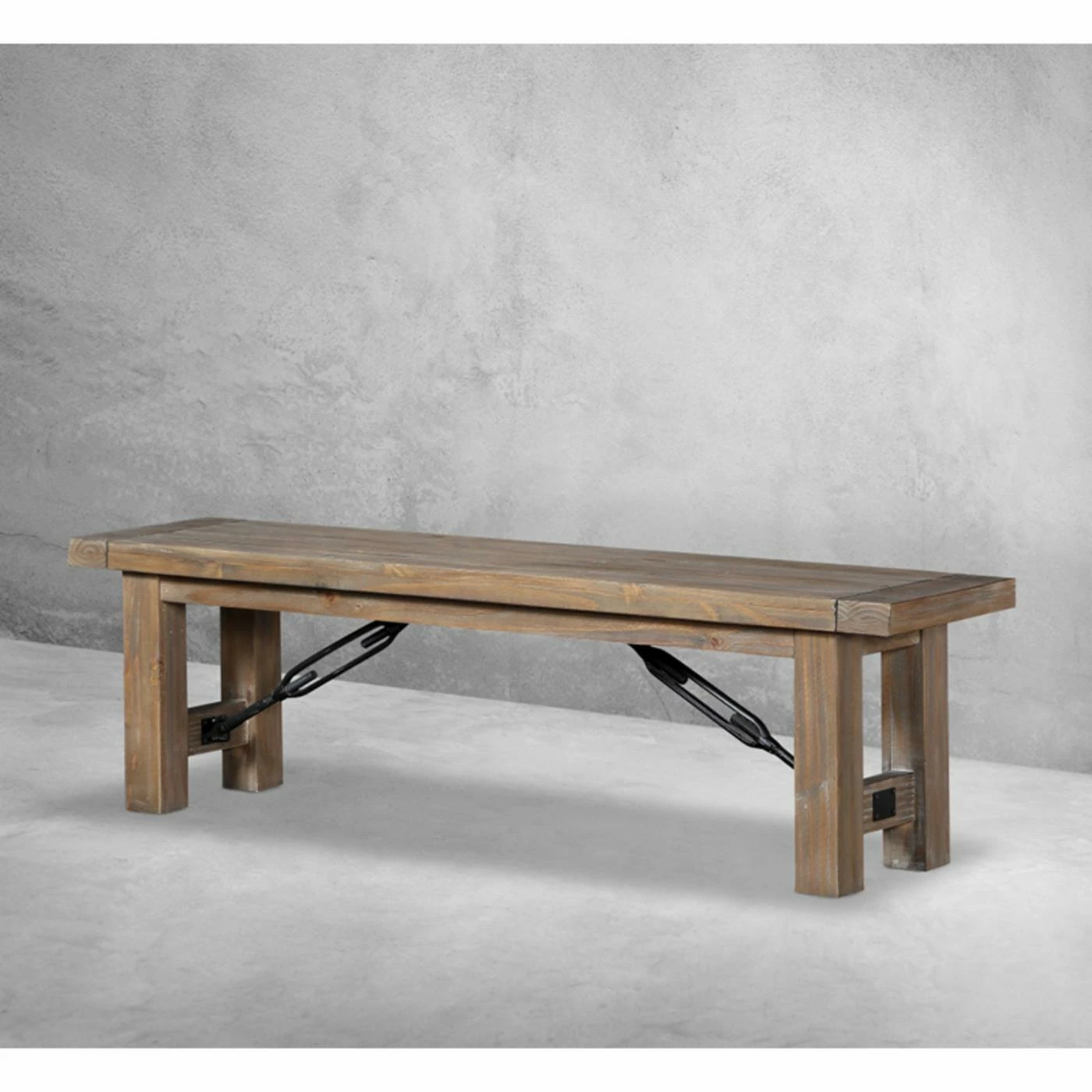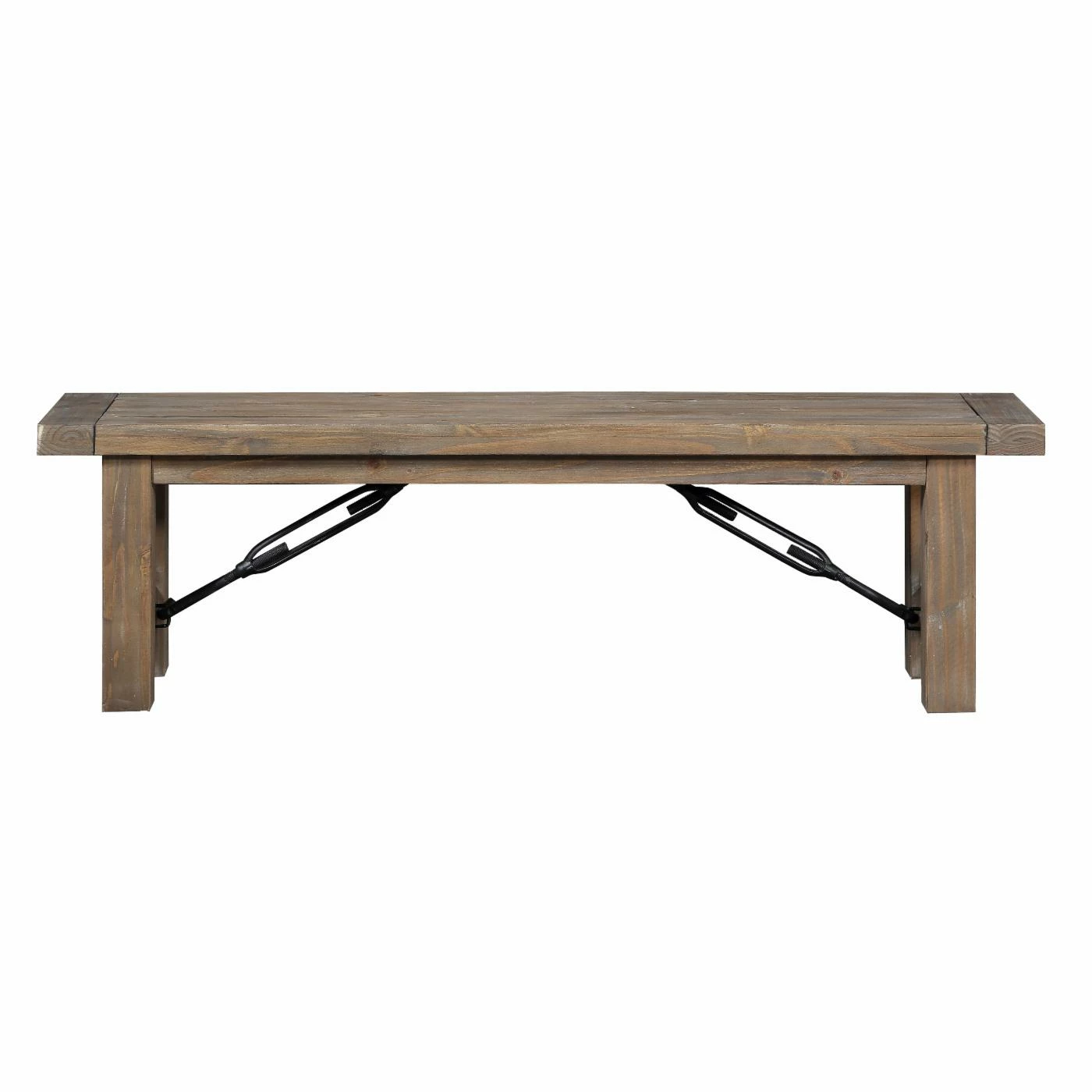 The Modus Autumn Dining Bench showcases farmhouse industrial style in your dining area. This backless dining bench features a flint gray finish with black metal accents giving the industrial vibe. With its solid wood construction, this dining bench brings form and function to your home.