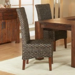Welcome natural beauty into your home with the Modus Meadow Wicker Dining Side Chair – Brick Brown – Set of 2. Sustainable and gorgeous Acacia wood legs complement the woven wicker seat made from natural fibers. Not only beautiful, these chairs are built to last with elastic-reinforced seat and a solid wood frame. The slightly distressed look of the rich brick brown finish means that wear and tear won’t show. Complete the look with coordinating table and sideboard by Modus.