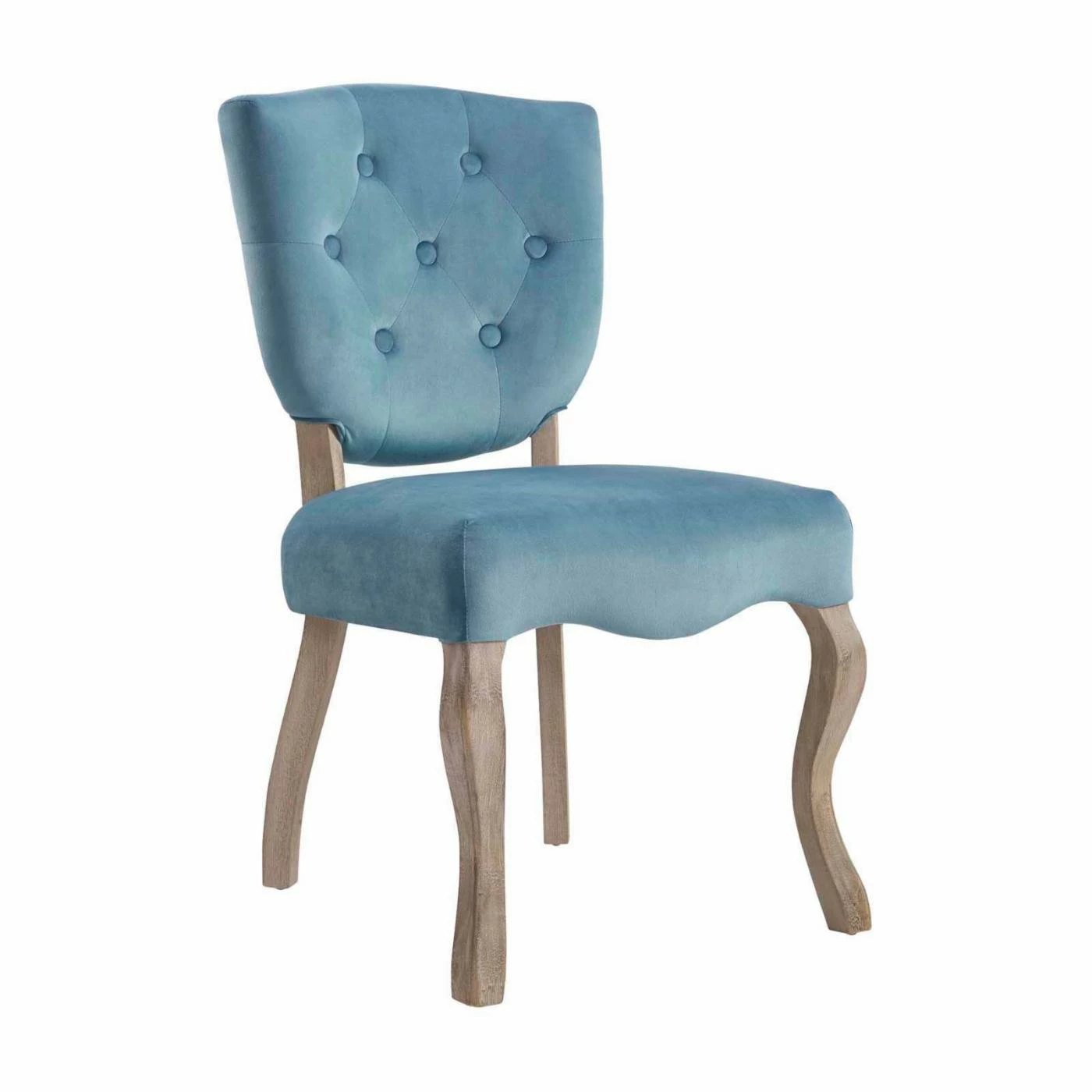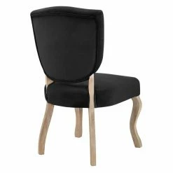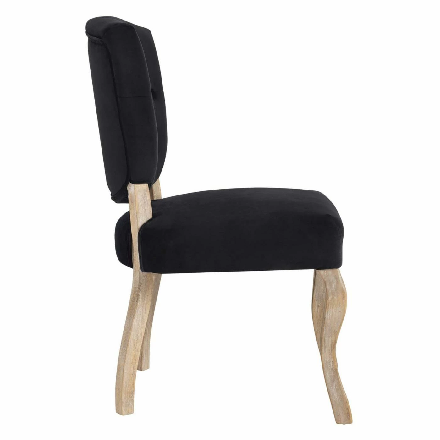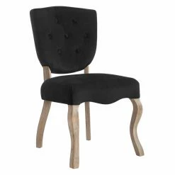 The Modway Array Vintage French Dining Side Chair is going to give you a fantastic look while still being subtle enough to not steal attention from your table. This chair has a hardwood frame with a wide seat, shield-shaped back, and saber-shaped legs. The seat and backrest are appointed with thick foam beneath velvet upholstery. Button-tufting gives a bit of depth and texture to the backrest. The legs are touched up with a weathered finish that adds a historical feel to the appearance.