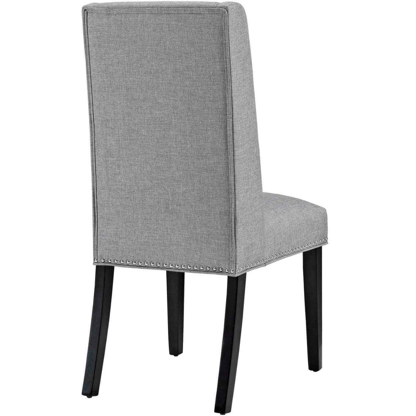 The Modway Baron Fabric Dining Side Chair combines comfort and elegance with its dense foam padding, high back, and antique copper nailhead trim. The solid wood frame is wrapped in soft polyester fabric that includes a selection of color options. The solid rubberwood legs are capped with non-marking foot glides to protect your floors.