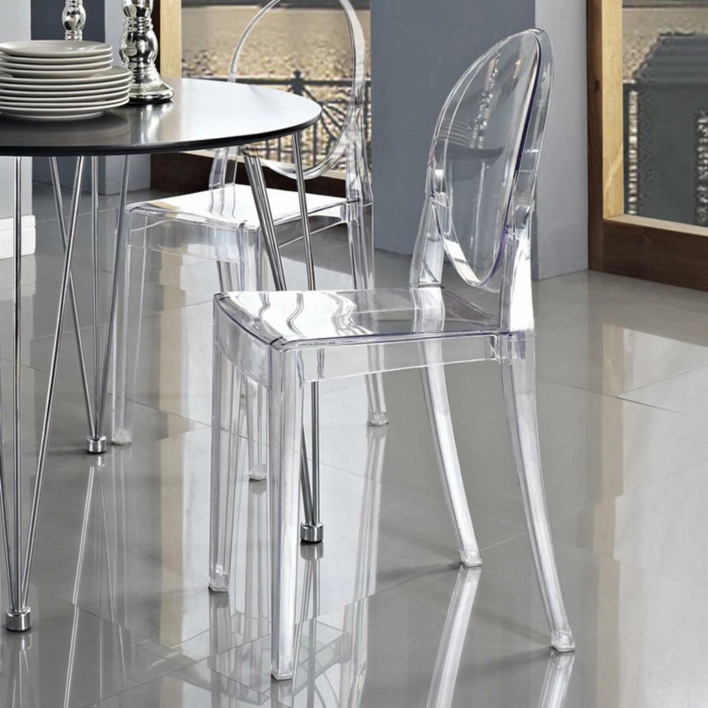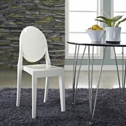When looking for unique modern designs, sometimes you feel like the deck is stacked against you, but not after you see the Modway Casper Stackable Dining Side Chair. Made of sturdy acrylic, the transparent design gives it a delicate, lighter-than-air quality. Stackable for convenience, and comfortable for daily use, these chairs are certain to level up the look of your home. Choose from available colors.